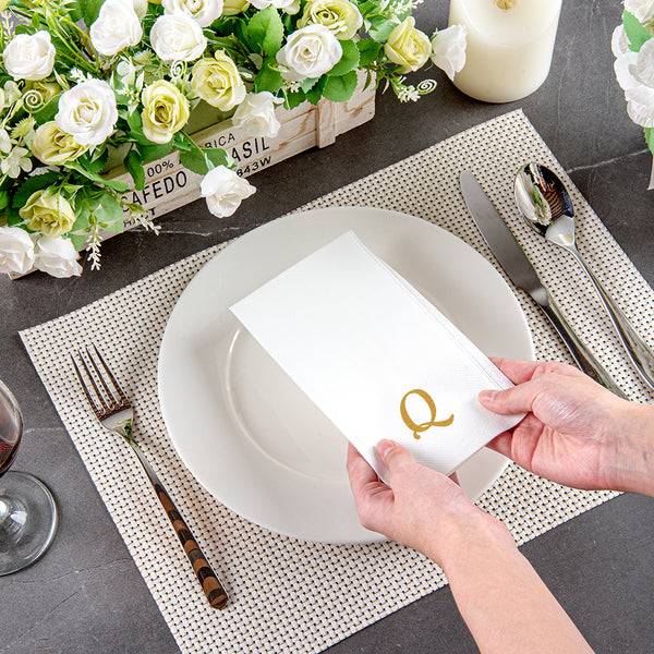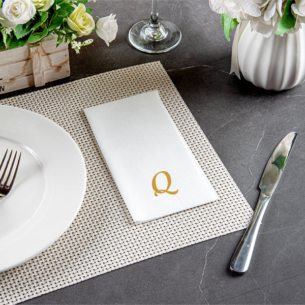 Create an upscale dining experience with our Luxenap Linen-Feel Napkins. These disposable napkins, measuring 15.75 inches by 7.87 inches, offer a luxurious guest experience, making them an ideal choice for any refined foodservice setting. Crafted from premium air-laid paper, they boast exceptional absorbency to efficiently tackle spills, ensuring your tables remain pristine. The elegant gold lettering on each of these luxury paper napkins adds a sophisticated touch to your table settings, elevating the visual appeal of any dining occasion. Designed from biodegradable paper, these napkins align with sustainable practices without compromising quality. Elevate your dining ambiance effortlessly with these versatile napkins. Each order includes 50 Luxenap Linen-Feel Napkins.