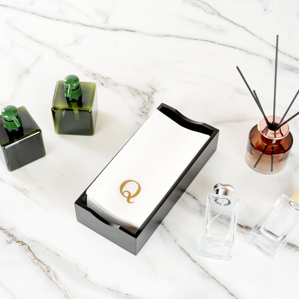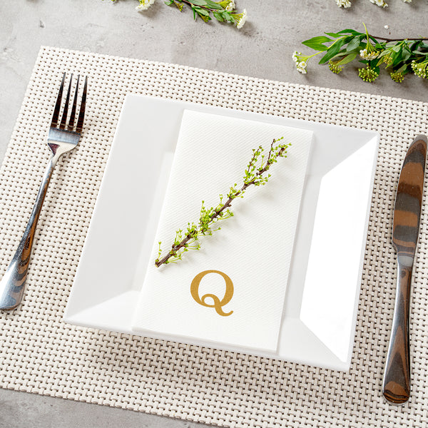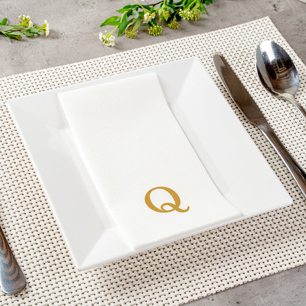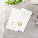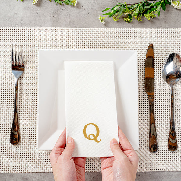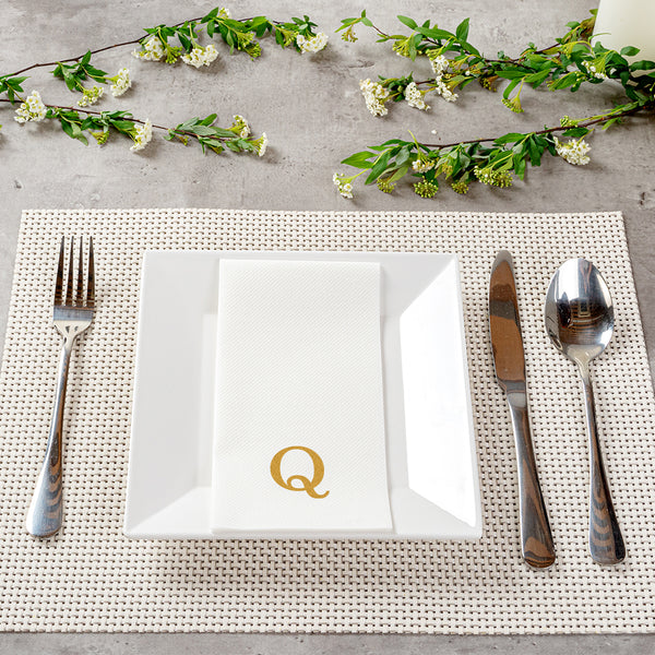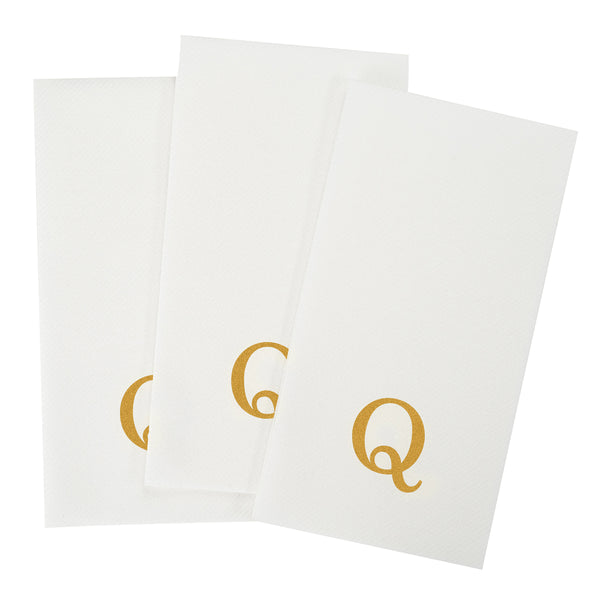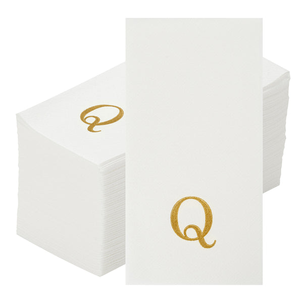 GOLD LETTER Q PAPER LINEN-FEEL GUEST TOWEL/NAPKIN - SANS SERIF FONT