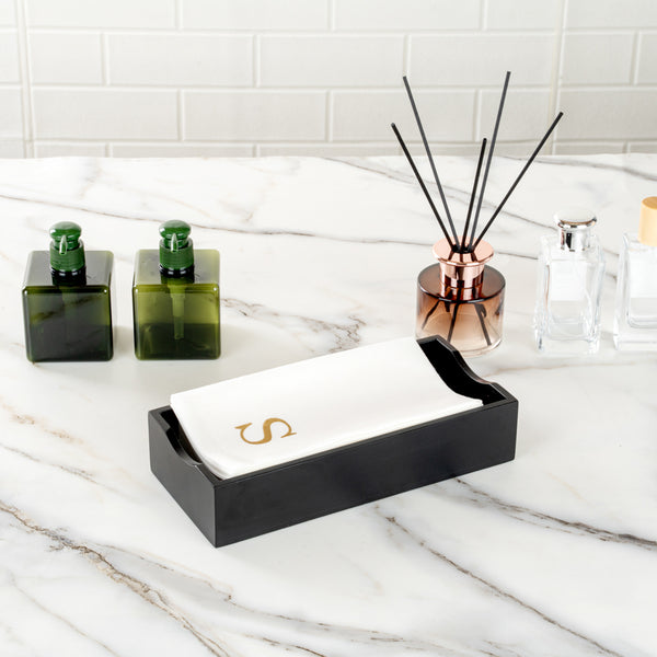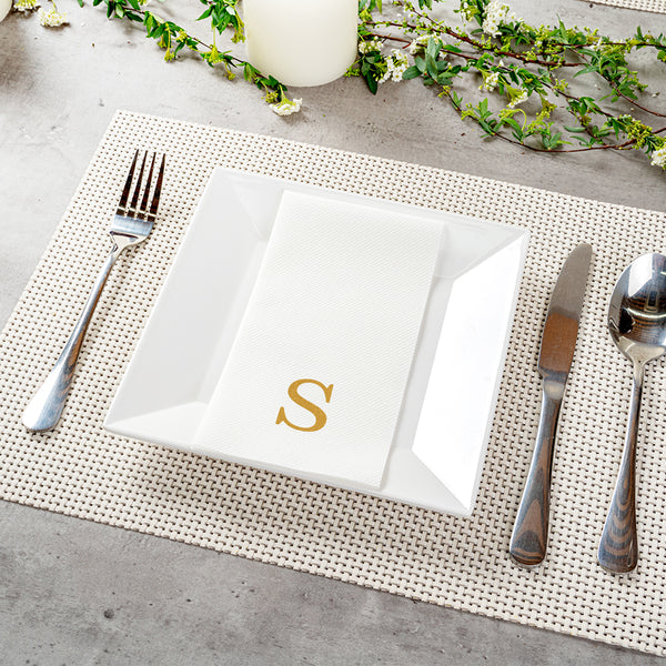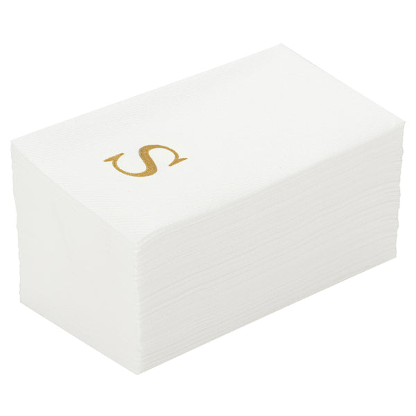 GOLD LETTER S PAPER LINEN-FEEL GUEST TOWEL/NAPKIN - SANS SERIF FONT