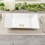 Enhance guest comfort with eco-friendly, absorbent tableware. The Luxenap Rectangle Gold Letter S White Paper Linen-Feel Guest Towel / Napkin offers a luxurious alternative to conventional options, featuring airlaid texture that enhances absorption for effective spill management. With elegant gold printing, this linen-feel napkin elevates presentations at upscale events, making it ideal for sophisticated dining experiences. Made from air-laid paper, these napkins measure 15.75 inches by 7.87 inches, providing ample coverage and ensuring practicality at the dining table. The biodegradable design supports eco-friendly disposal practices, aligning with environmentally-conscious operations. Whether used as a paper napkin or as a disposable guest towel, these items provide versatility and convenience for various foodservice settings. Facilitate quick and easy cleanup with this sustainable choice. Sold in a 50 count box.