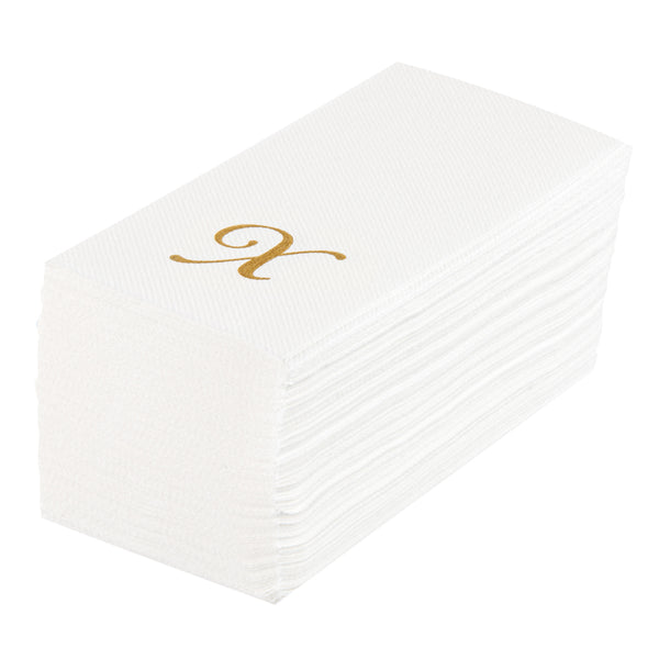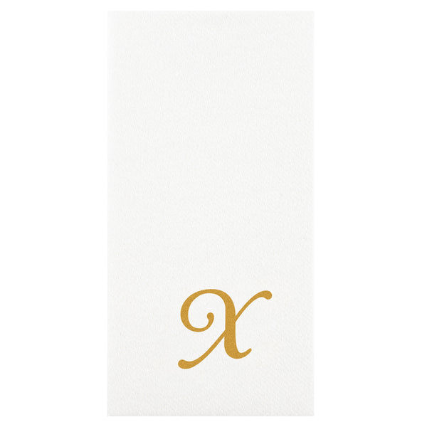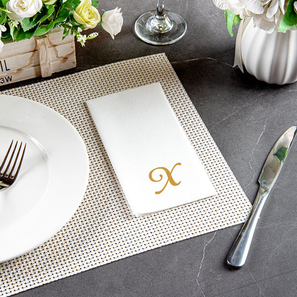 GOLD LETTER X PAPER LINEN-FEEL GUEST TOWEL/NAPKIN - CURSIVE FONT