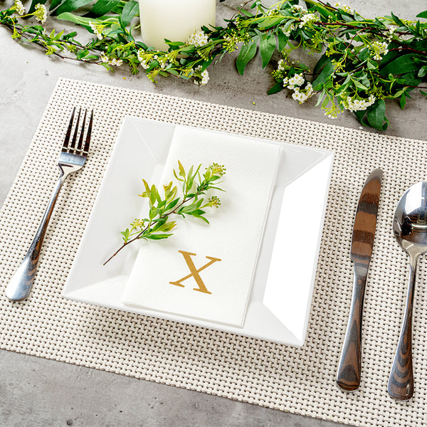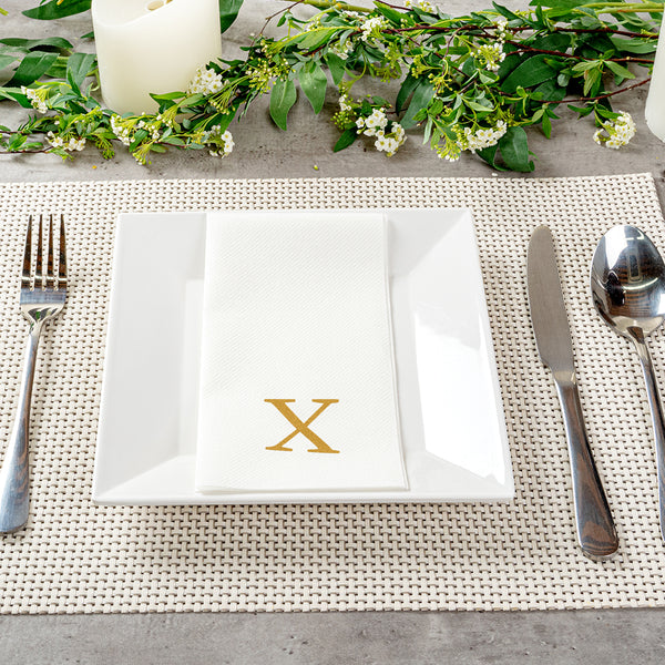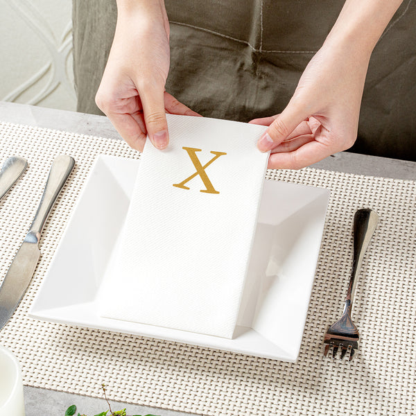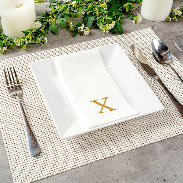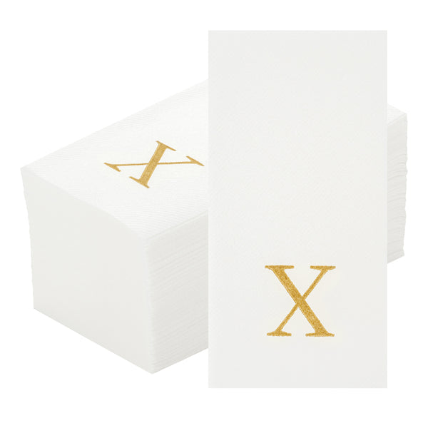 GOLD LETTER X PAPER LINEN-FEEL GUEST TOWEL/NAPKIN - SANS SERIF FONT