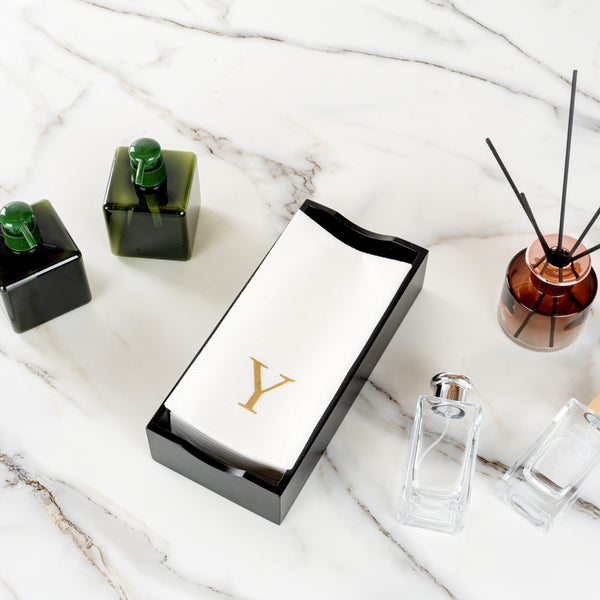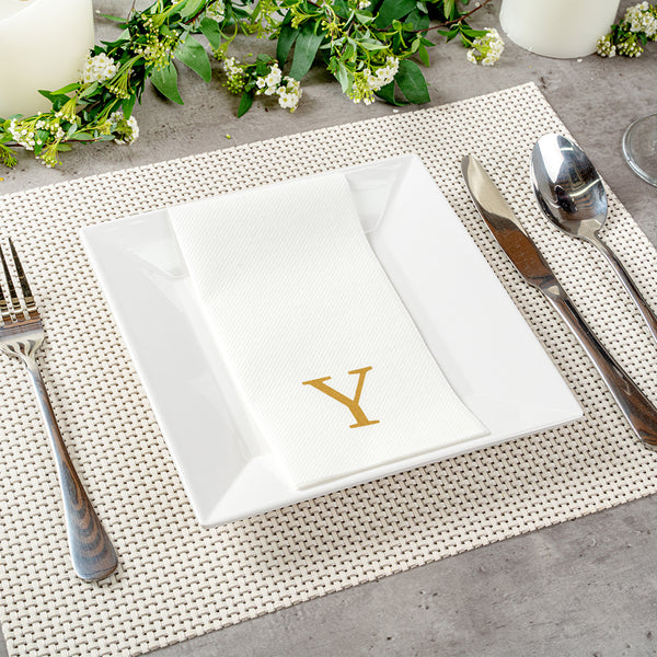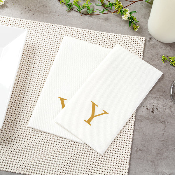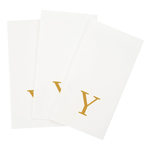 GOLD LETTER Y PAPER LINEN-FEEL GUEST TOWEL/NAPKIN - SANS SERIF FONT