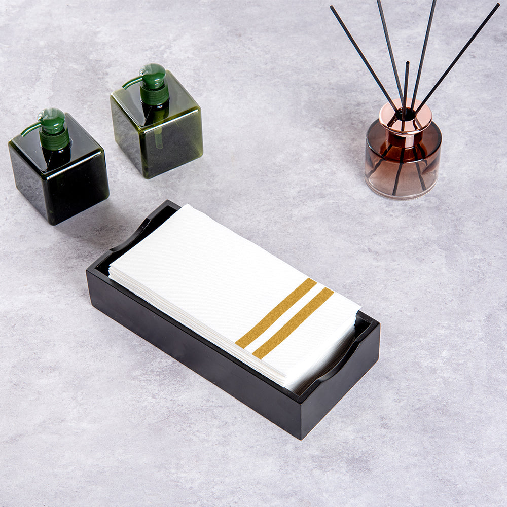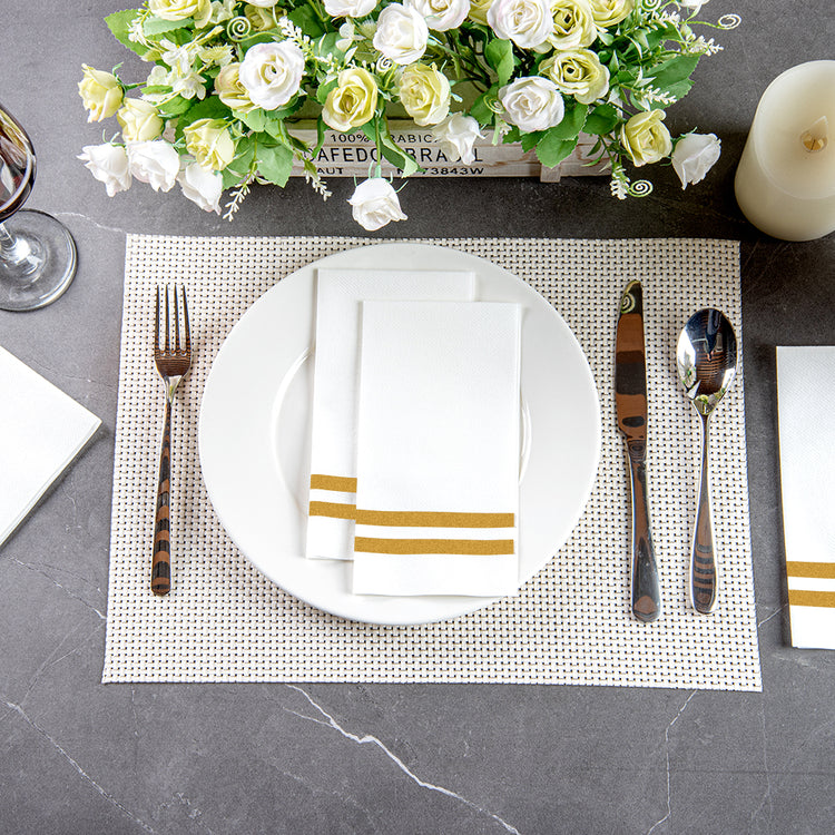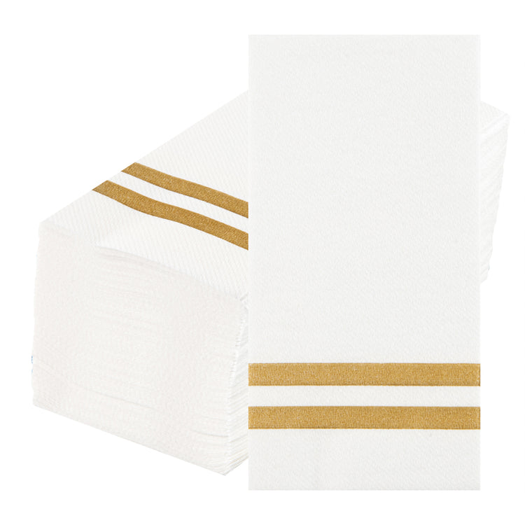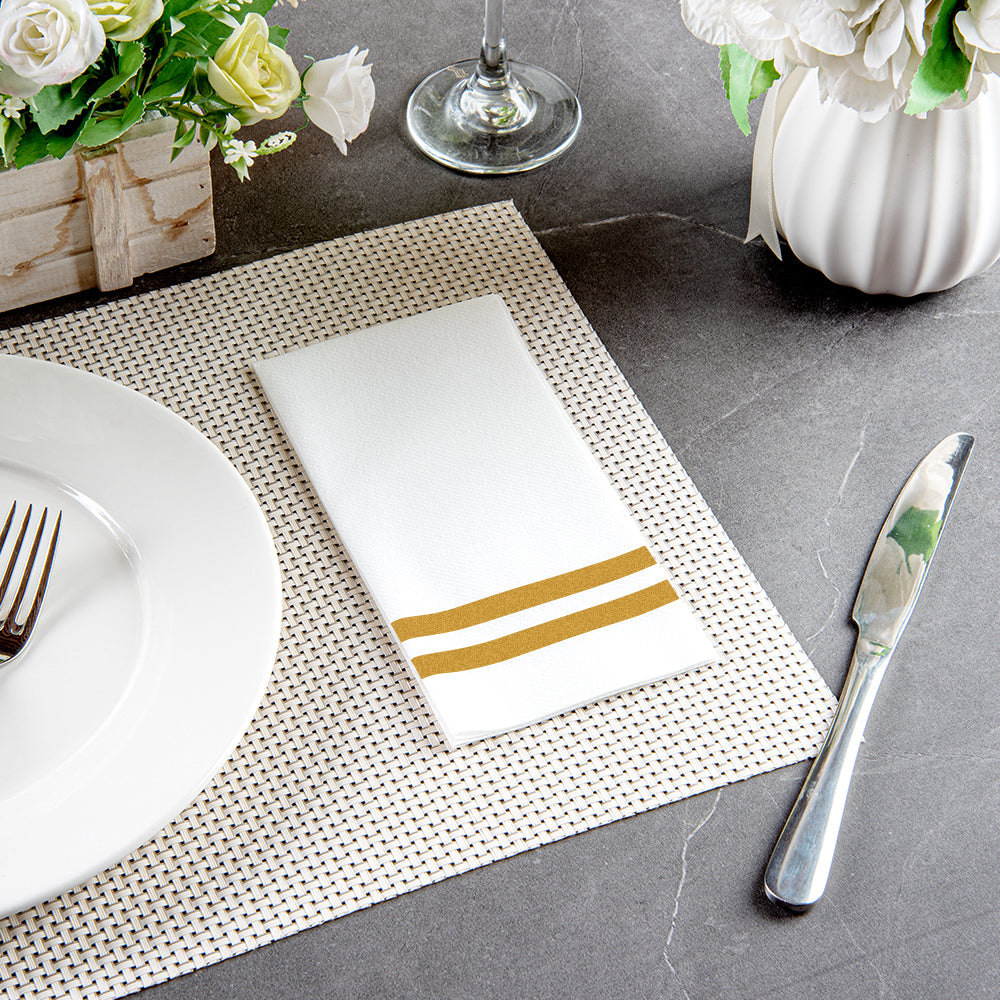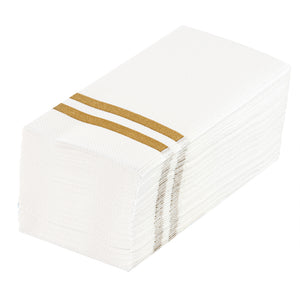 GOLD STRIPED PAPER LINEN-FEEL GUEST TOWEL/NAPKIN - AIR LAID