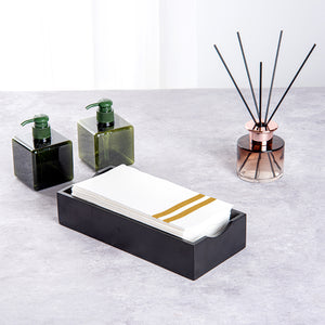 Offer your guests high-end comfort with our Luxenap Rectangle Gold White Paper Linen-Feel Guest Towels / Napkins. Made from cellulose fibers, these airlaid paper napkins are durable and provide a cloth feel, making them an efficient and sustainable alternative to traditional paper napkins. These guest towels have high liquid absorption properties to let you easily clean up accidental spills with a single napkin. With a natural look and drape of linen, these buffet napkins are ideal to be used as hand towels, as they do not itch or draw the skin. Featuring a gold-striped design, these table napkins elevate the table setting for your guests. These striped paper napkins are commercially compostable and biodegradable. To avoid a time-consuming cleaning process, these quilted, single-ply napkins are easily disposable, unlike traditional linen napkins that need regular laundering. Prefolded with a ¼ fold, these napkins for restaurants can also be used to wrap silverware and offer guests a sanitary experience. These rectangular dinner napkins measure 8 inches long by 4 inches wide when folded and 15.75 inches long by 8 inches wide when unfolded. Shipped in a 50 count box. This item will only degrade outside of the traditional solid waste stream.