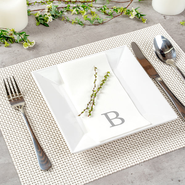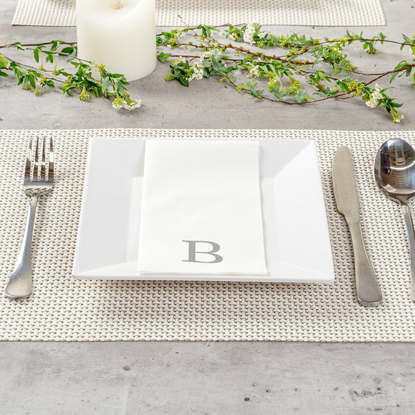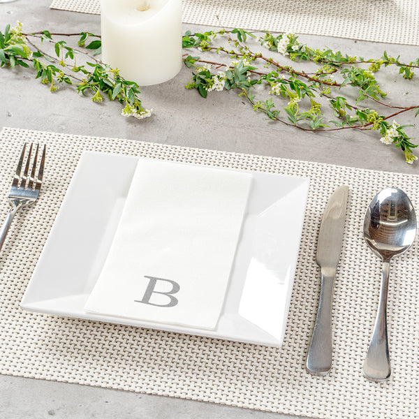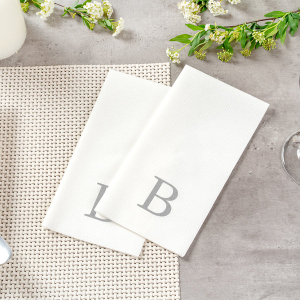 SILVER LETTER B PAPER LINEN-FEEL GUEST TOWEL/NAPKIN - SANS SERIF FONT