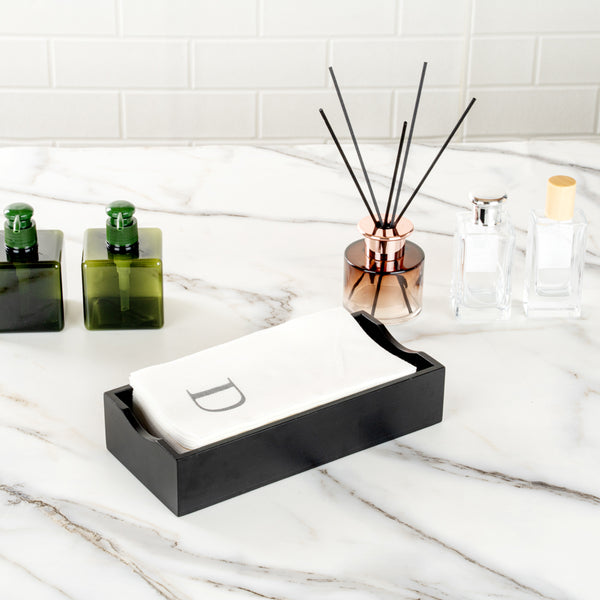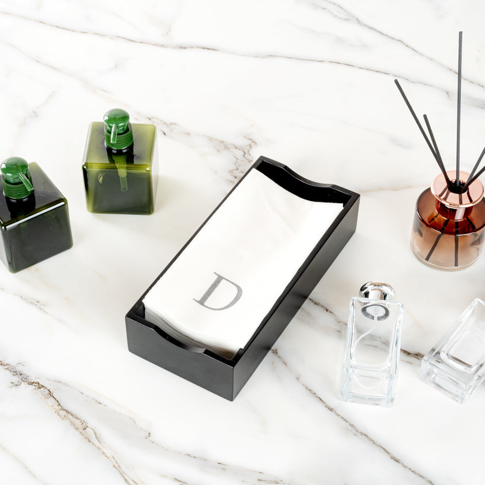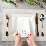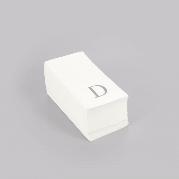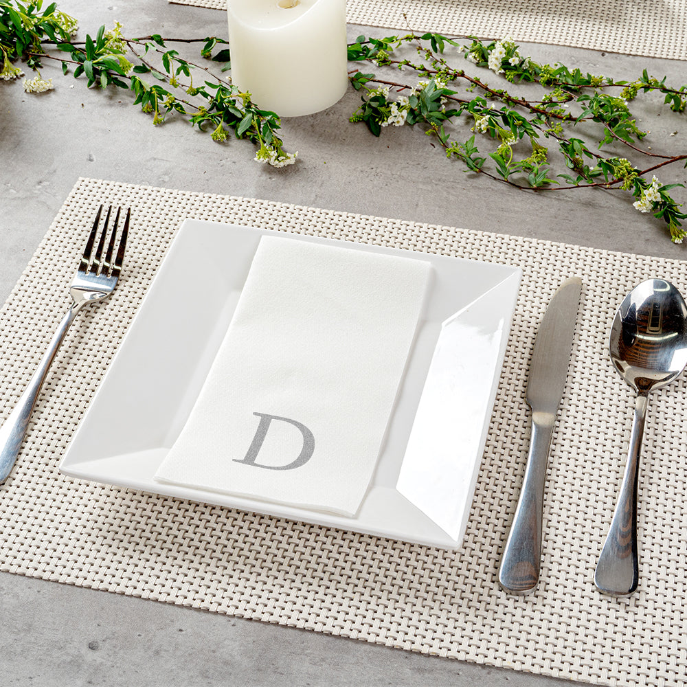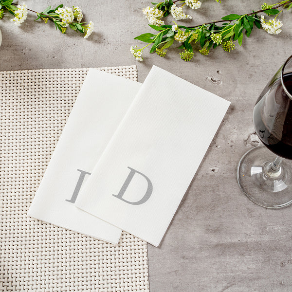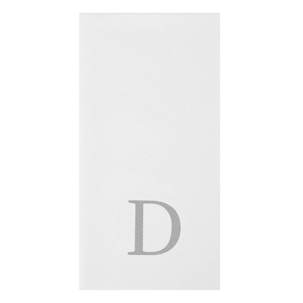 SILVER LETTER D PAPER LINEN-FEEL GUEST TOWEL/NAPKIN - SANS SERIF FONT