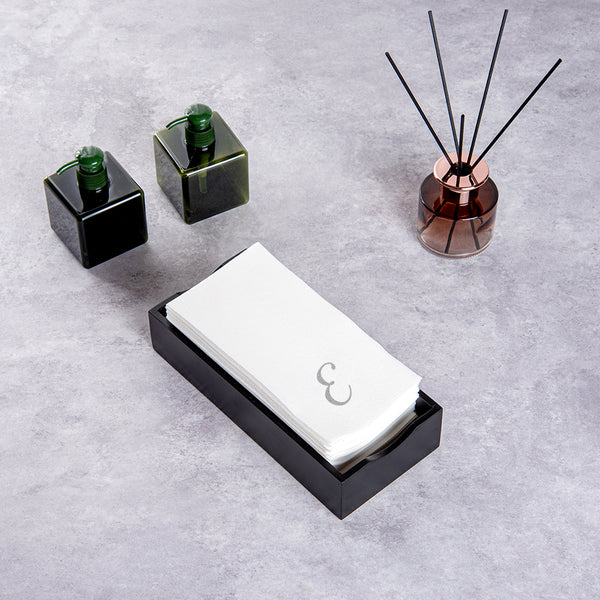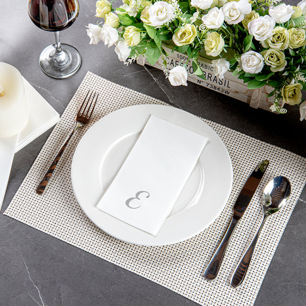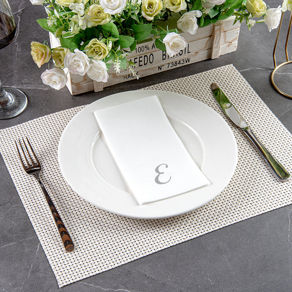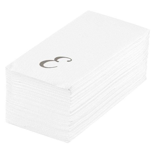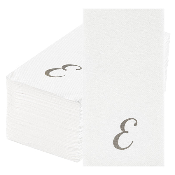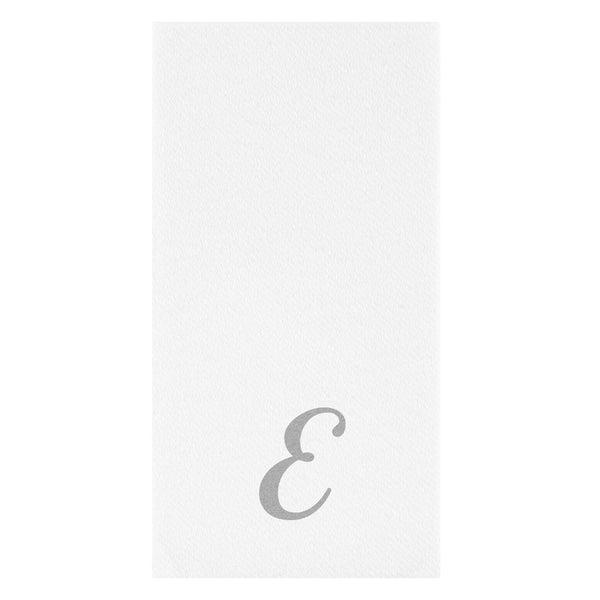 SILVER LETTER E PAPER LINEN-FEEL GUEST TOWEL/NAPKIN - CURSIVE FONT