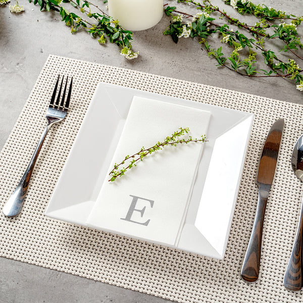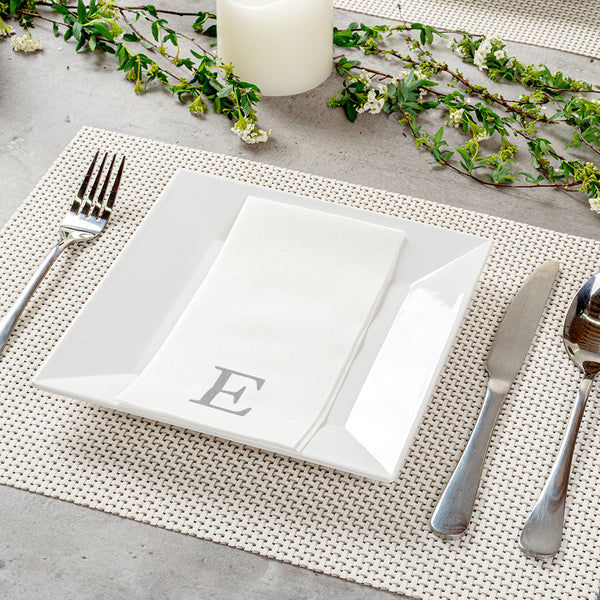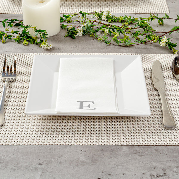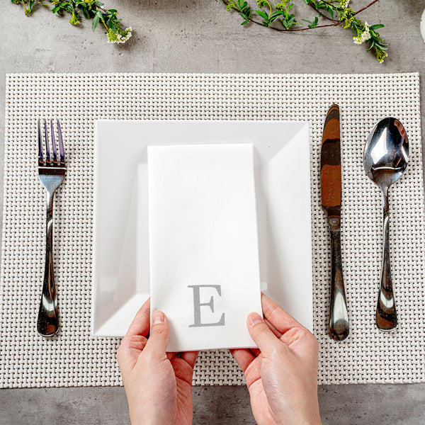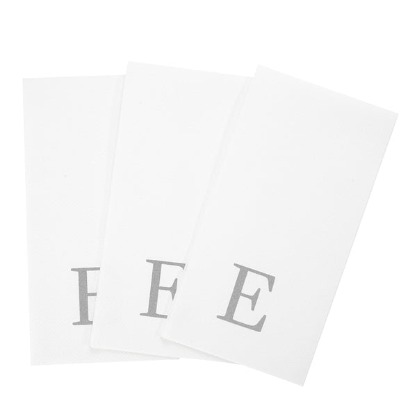 SILVER LETTER E PAPER LINEN-FEEL GUEST TOWEL/NAPKIN - SANS SERIF FONT