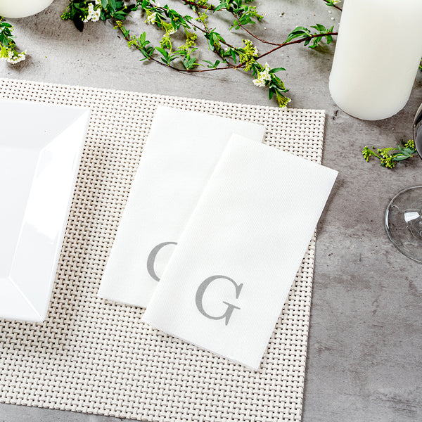 SILVER LETTER G PAPER LINEN-FEEL GUEST TOWEL/NAPKIN - SANS SERIF FONT
