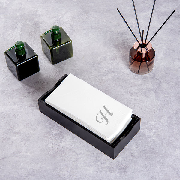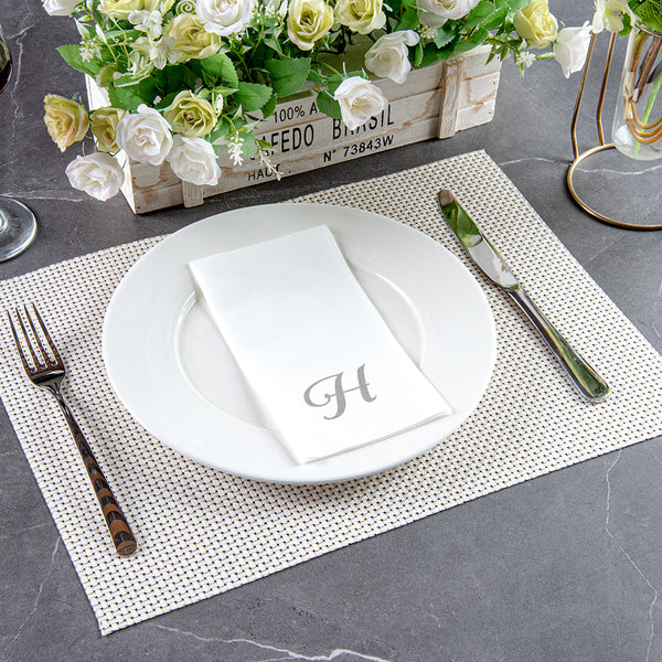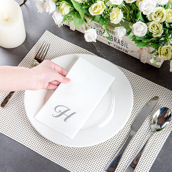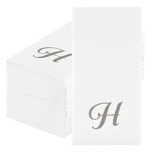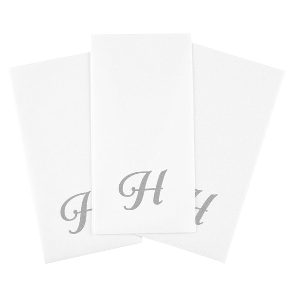 SILVER LETTER H PAPER LINEN-FEEL GUEST TOWEL/NAPKIN - CURSIVE FONT