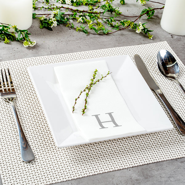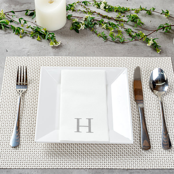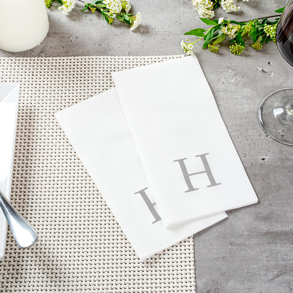 SILVER LETTER H PAPER LINEN-FEEL GUEST TOWEL/NAPKIN - SANS SERIF FONT