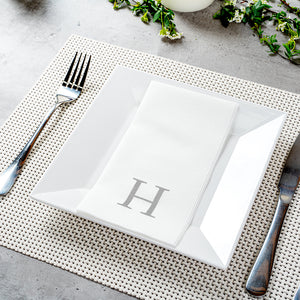 SILVER LETTER H PAPER LINEN-FEEL GUEST TOWEL/NAPKIN - SANS SERIF FONT