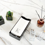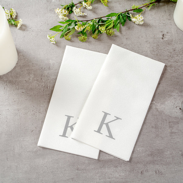 SILVER LETTER K PAPER LINEN-FEEL GUEST TOWEL/NAPKIN - SANS SERIF FONT