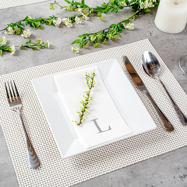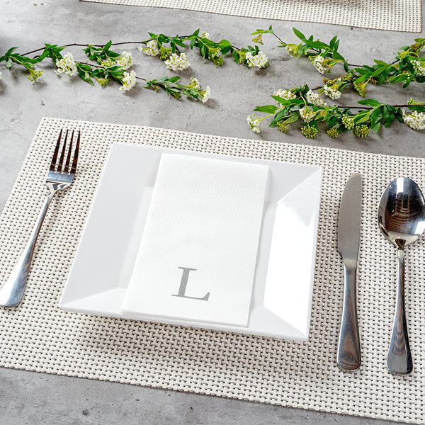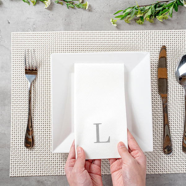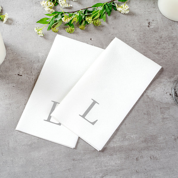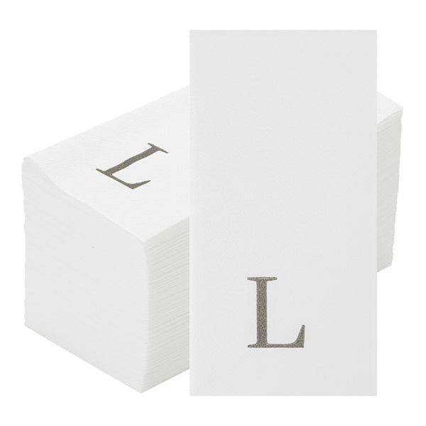 SILVER LETTER L PAPER LINEN-FEEL GUEST TOWEL/NAPKIN - SANS SERIF FONT