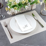 Luxenap Rectangle Silver Letter M White Paper Linen-Feel Guest Towel / Napkin - Air Laid, Cursive Font - 15 3/4