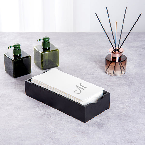 SILVER LETTER M PAPER LINEN-FEEL GUEST TOWEL/NAPKIN - CURSIVE FONT
