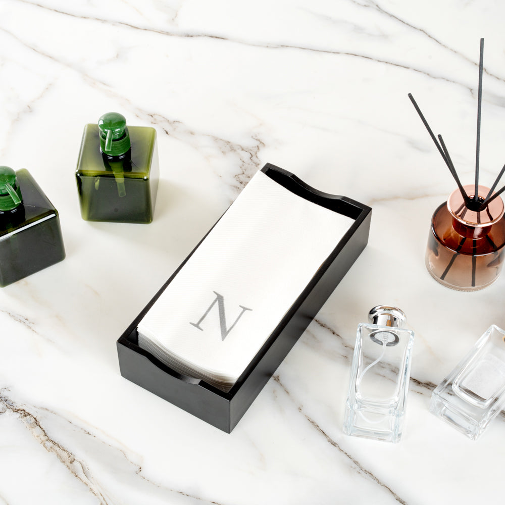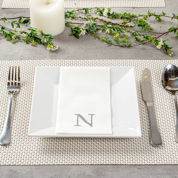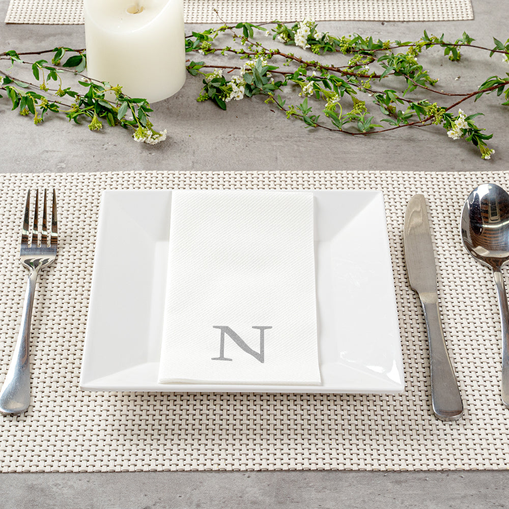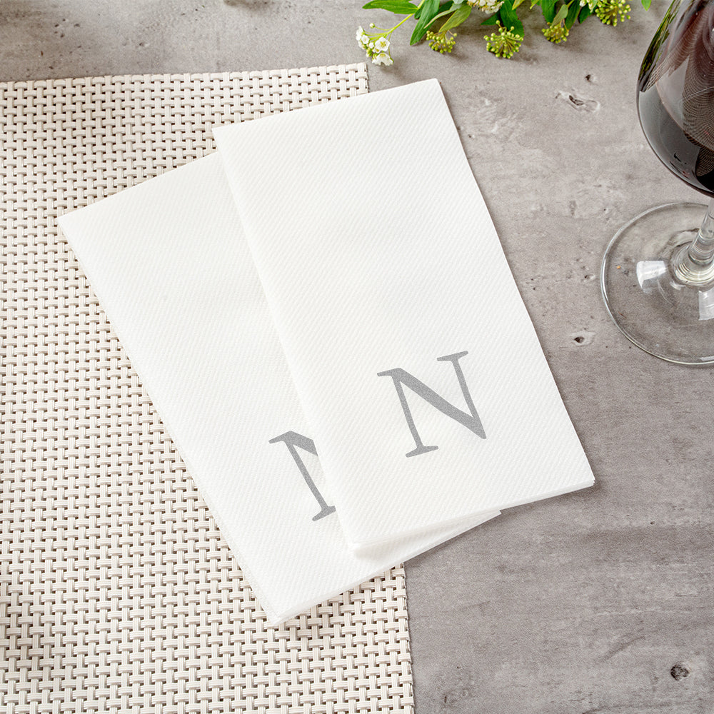SILVER LETTER N PAPER LINEN-FEEL GUEST TOWEL/NAPKIN - SANS SERIF FONT