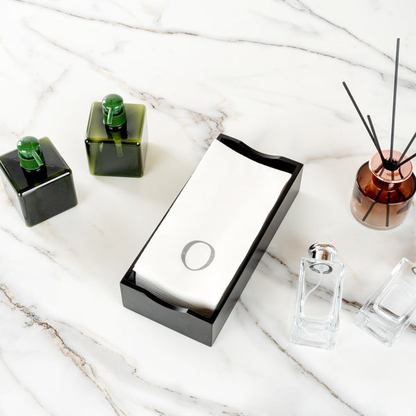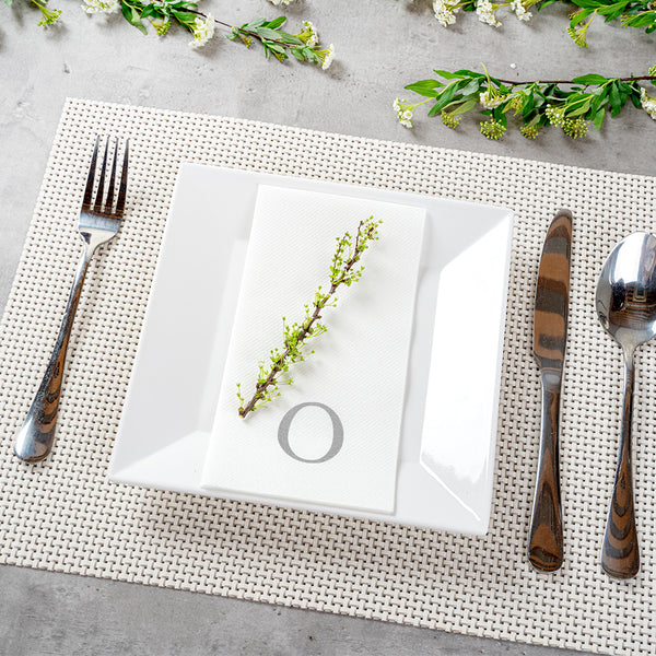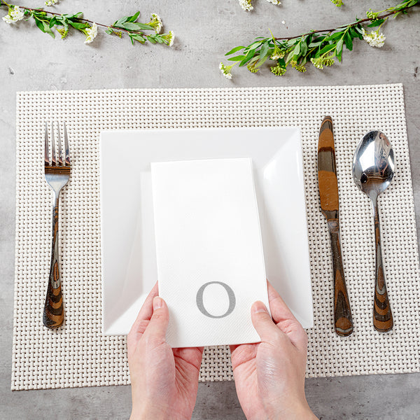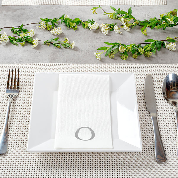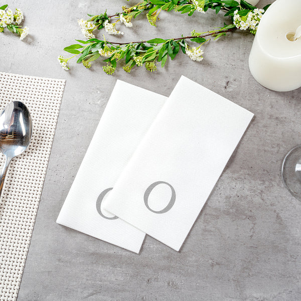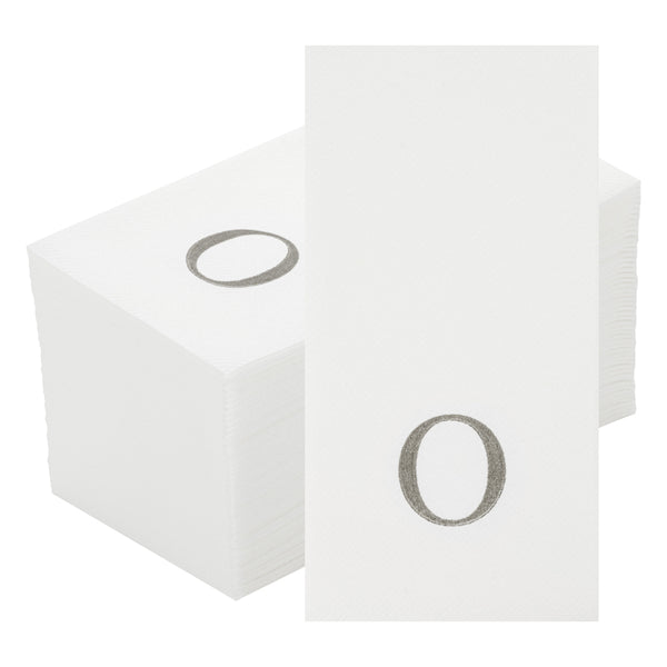 SILVER LETTER O PAPER LINEN-FEEL GUEST TOWEL/NAPKIN - SANS SERIF FONT