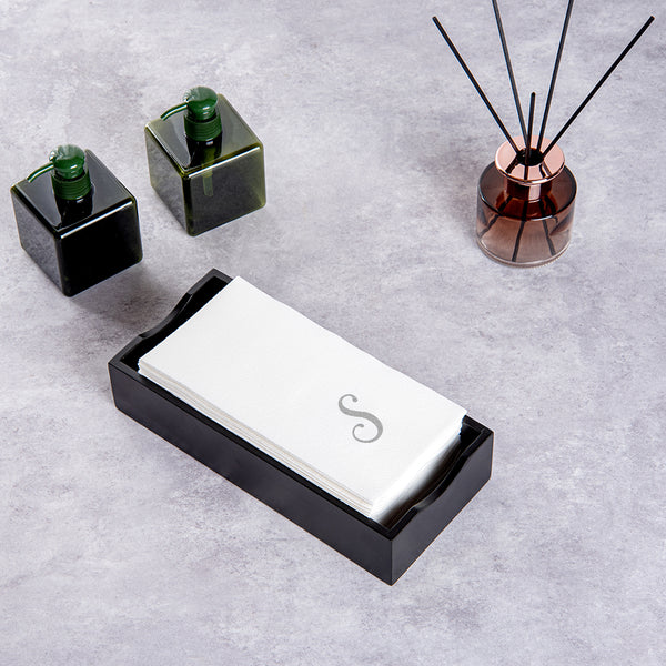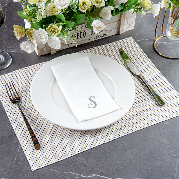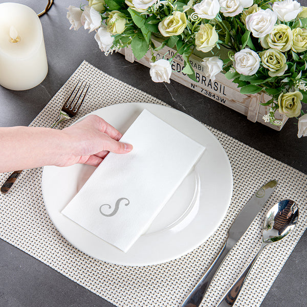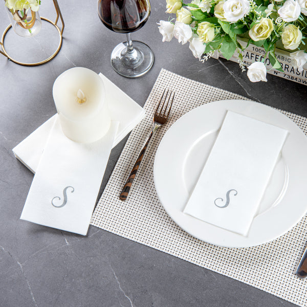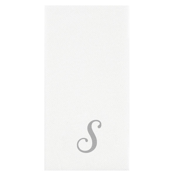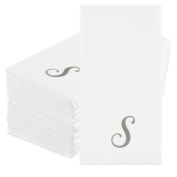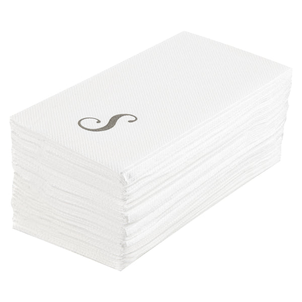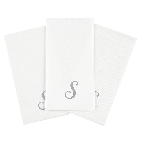 SILVER LETTER S PAPER LINEN-FEEL GUEST TOWEL/NAPKIN - CURSIVE FONT