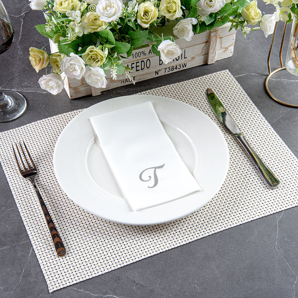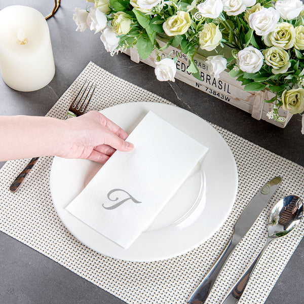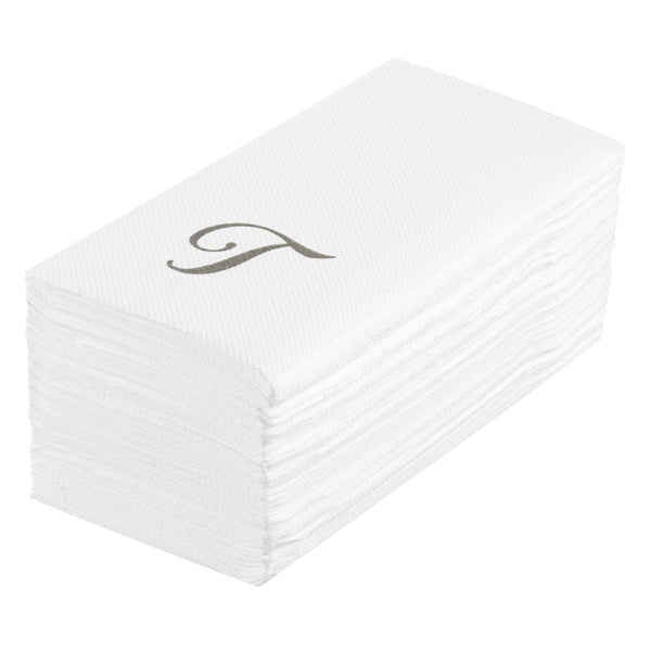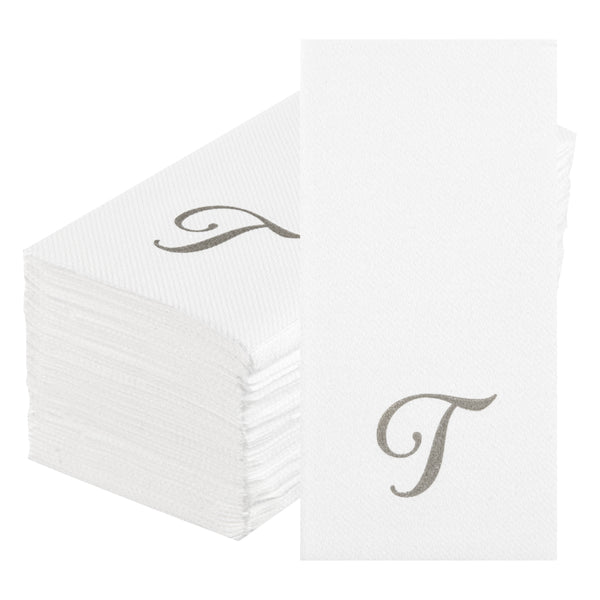 SILVER LETTER T PAPER LINEN-FEEL GUEST TOWEL/NAPKIN - CURSIVE FONT