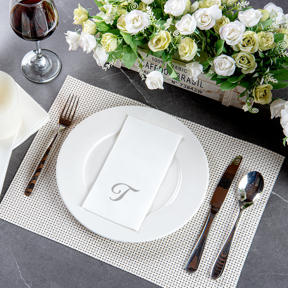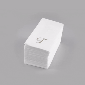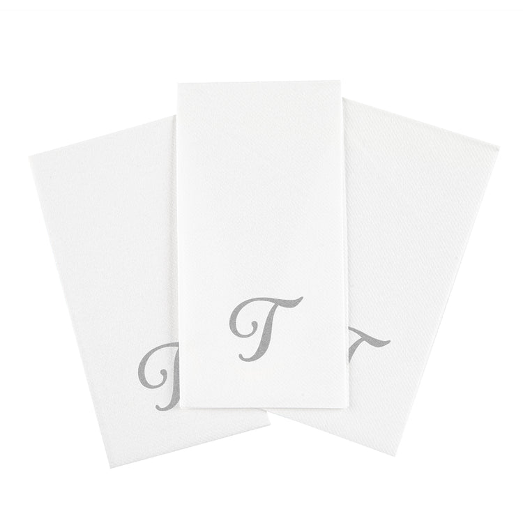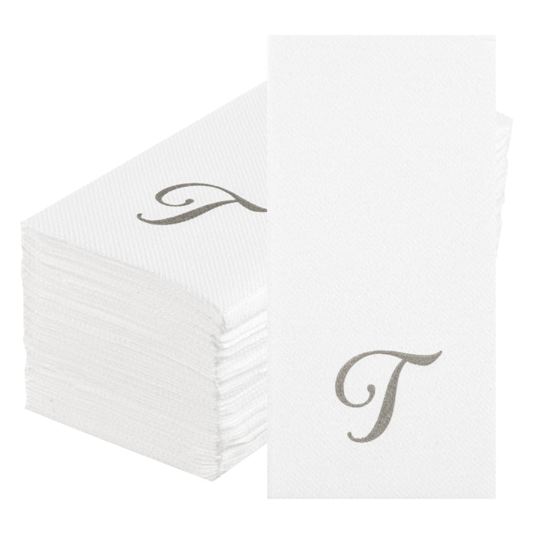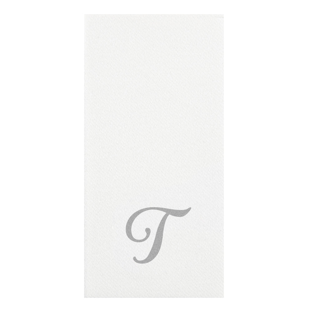 SILVER LETTER T PAPER LINEN-FEEL GUEST TOWEL/NAPKIN - CURSIVE FONT