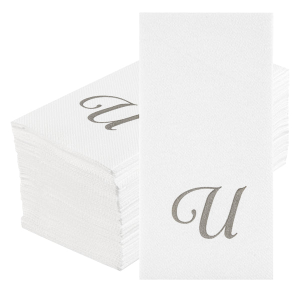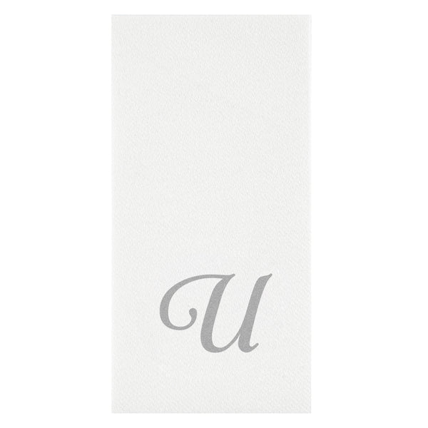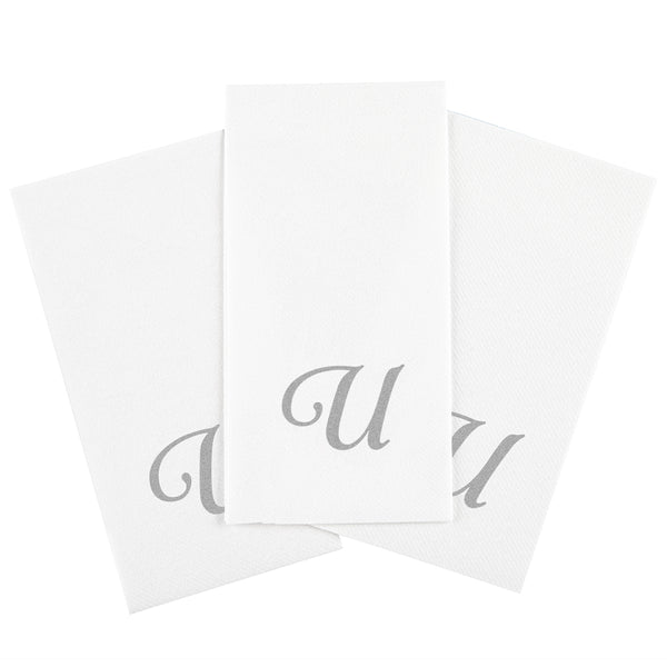 SILVER LETTER U PAPER LINEN-FEEL GUEST TOWEL/NAPKIN - CURSIVE FONT