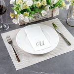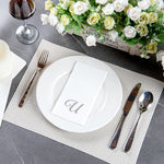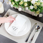 Luxenap Rectangle Silver Letter U White Paper Linen-Feel Guest Towel / Napkin - Air Laid, Cursive Font - 15 3/4