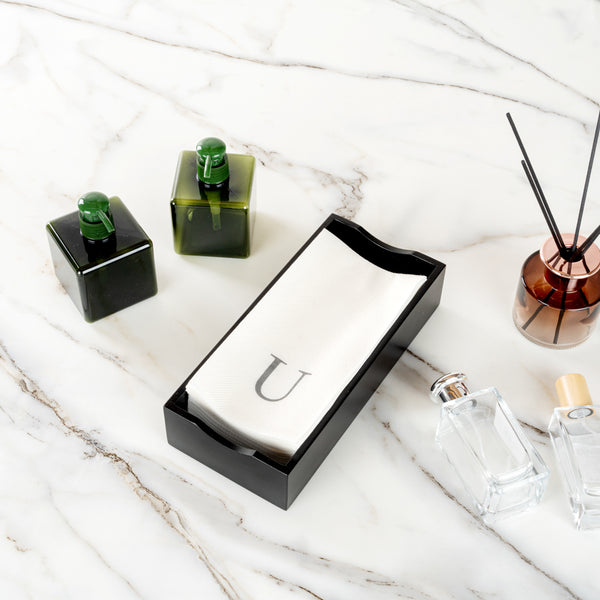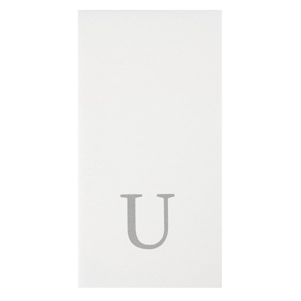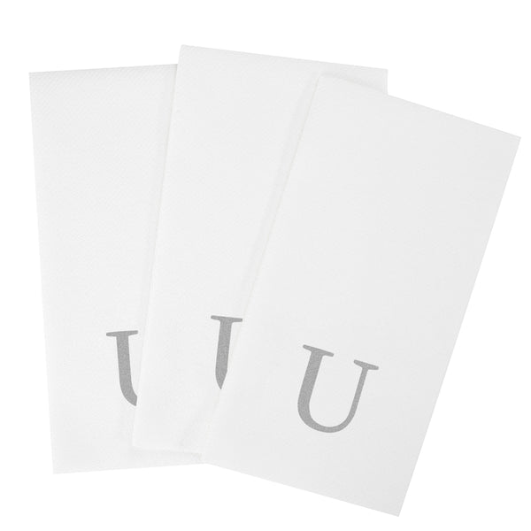 SILVER LETTER U PAPER LINEN-FEEL GUEST TOWEL/NAPKIN - SANS SERIF FONT
