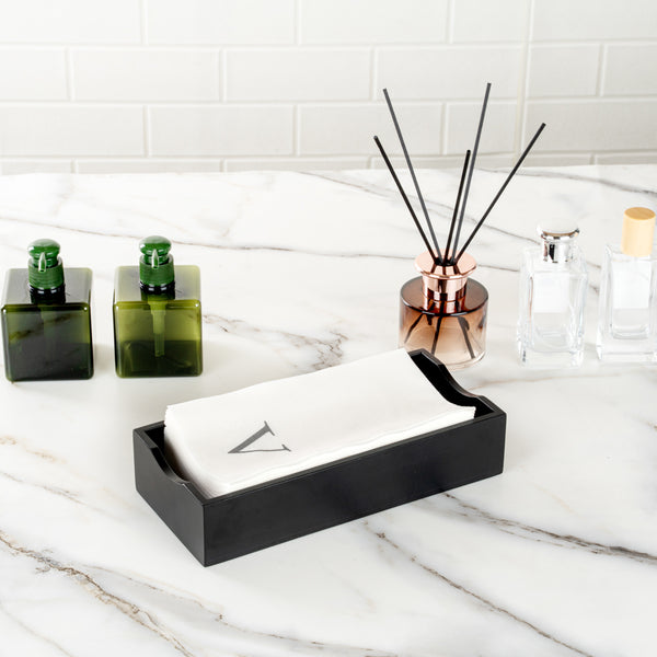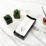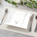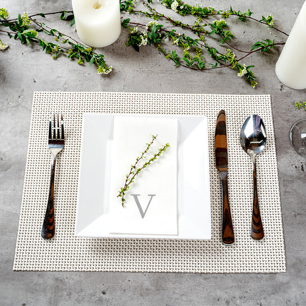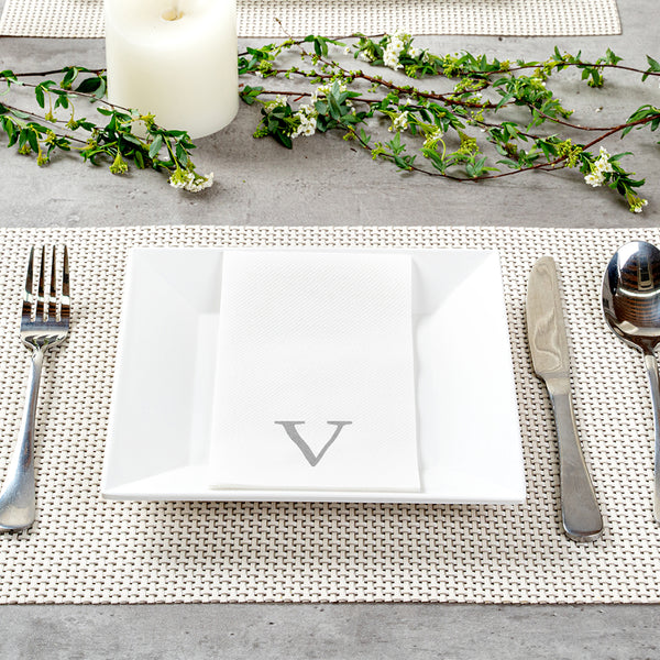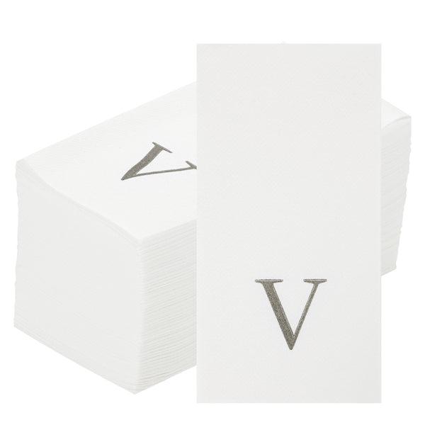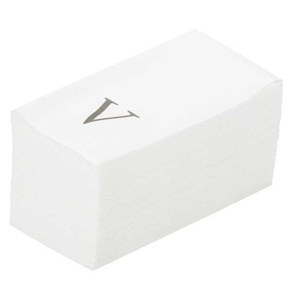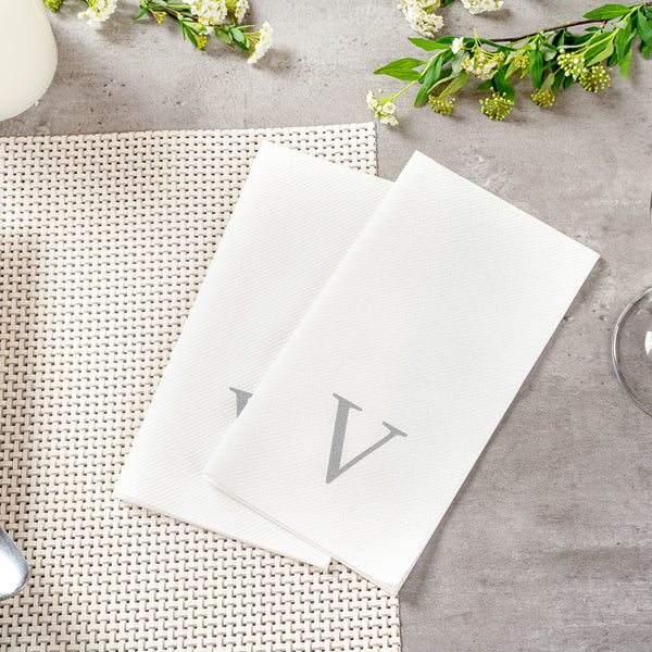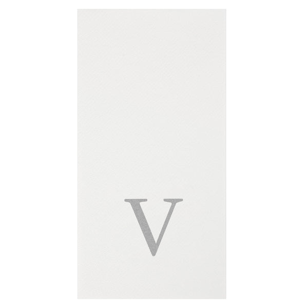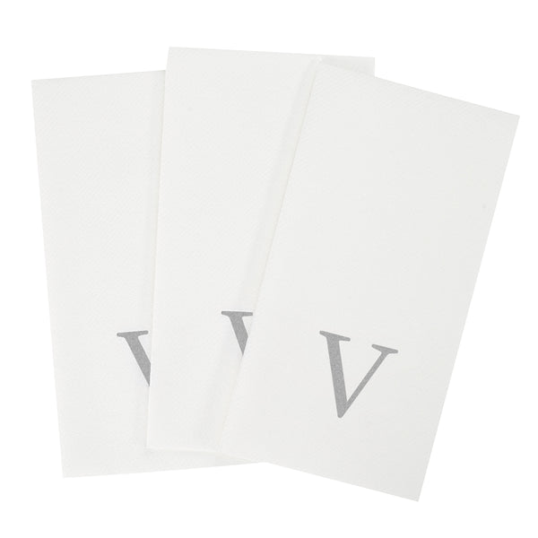SILVER LETTER V PAPER LINEN-FEEL GUEST TOWEL/NAPKIN - SANS SERIF FONT
