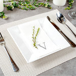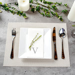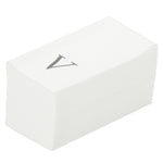 Enhance upscale dining with elegant, eco-friendly disposable napkins. The Luxenap Rectangle Silver Letter V White Paper Linen-Feel Guest Towel / Napkins offer a airlaid design that significantly boosts absorbency, ensuring efficient cleanup of spills and maintaining pristine table settings. Featuring a silver letter 'V' print in a sophisticated sans serif font, these paper napkins add a personalized touch of elegance to any dining presentation, making them ideal for high-end restaurants and formal events. Made from biodegradable materials, these linen-feel napkins support eco-friendly disposal practices, aligning with sustainability goals and reducing environmental impact. Measuring 15.75 inches in length and 7.87 inches in width when unfolded, these napkins are crafted from premium airlaid paper, offering the luxurious feel of linen while being fully disposable. Incorporate these versatile napkins into your dining service to impress guests with style and convenience. Sold in a 50 count box.