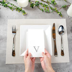 Luxenap Rectangle Silver Letter V White Paper Linen-Feel Guest Towel / Napkin - Air Laid, Sans Serif Font - 15 3/4