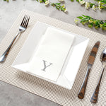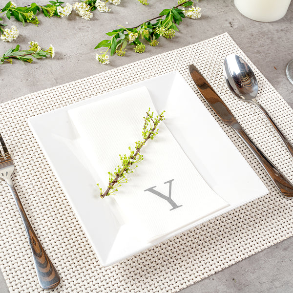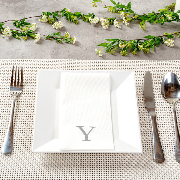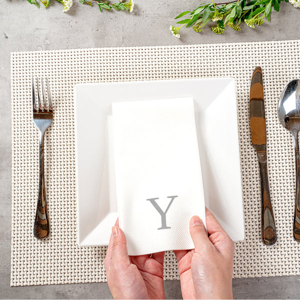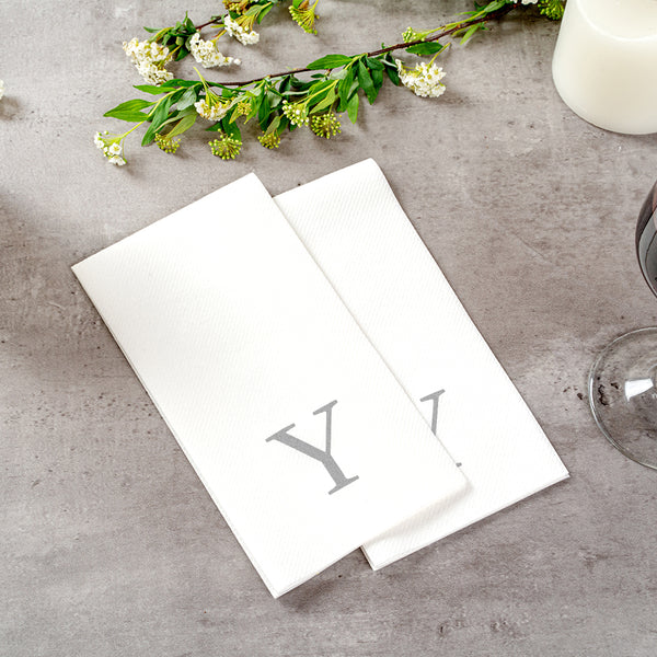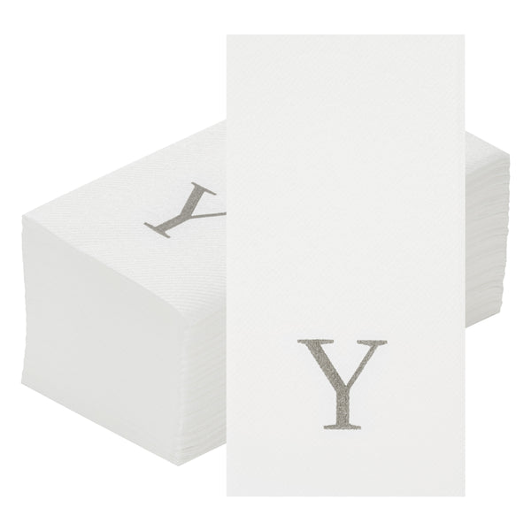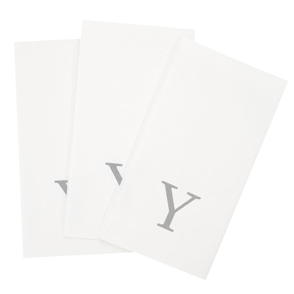 SILVER LETTER Y PAPER LINEN-FEEL GUEST TOWEL/NAPKIN - SANS SERIF FONT