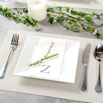 Enhance your dining experience with luxurious elegance and practicality. Luxenap Rectangle Silver Letter Z White Paper Linen-Feel Guest Towel / Napkins deliver a sophisticated touch to your table settings with their elegant silver letter 'Z' design, capturing the essence of a luxury disposable napkin. Constructed from premium air-laid paper, these napkins provide a linen-feel napkin experience, ensuring guests enjoy the premium ambiance of cloth napkins without the added cost or laundry hassle. Their airlaid design significantly increases napkin absorbency, effectively managing spills to maintain a pristine dining area. With generous dimensions of 15.75 inches by 7.87 inches, they offer ample coverage, enhancing guest comfort during meals. The compact fold of these napkins conserves storage and table space, making them ideal for busy foodservice environments. Elevate your formal events, catering services, or hotel dining with these biodegradable, compostable, and recyclable napkins. Sold in a 50 count box.