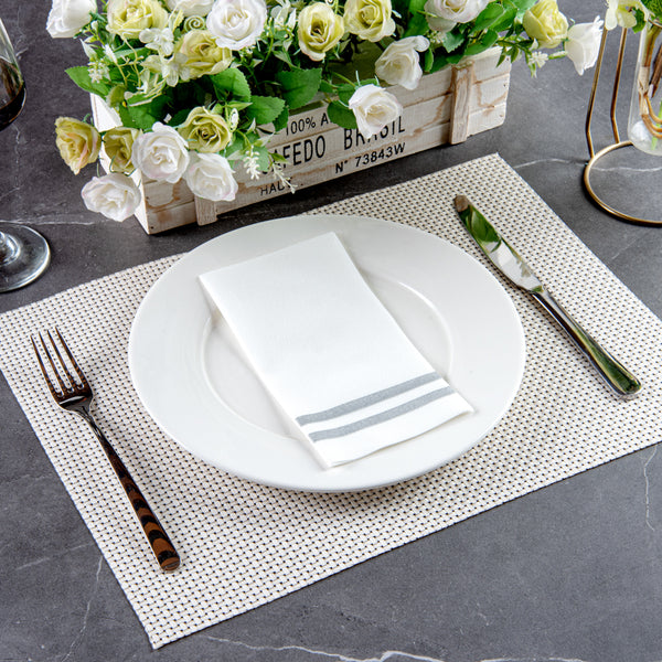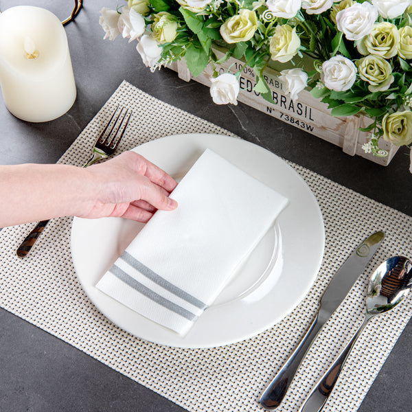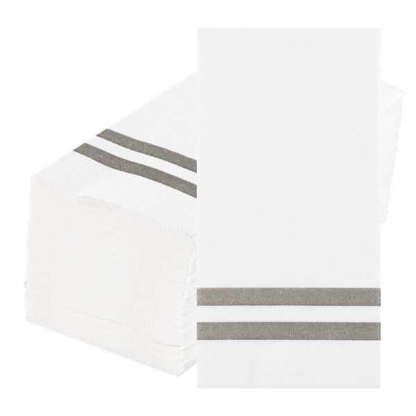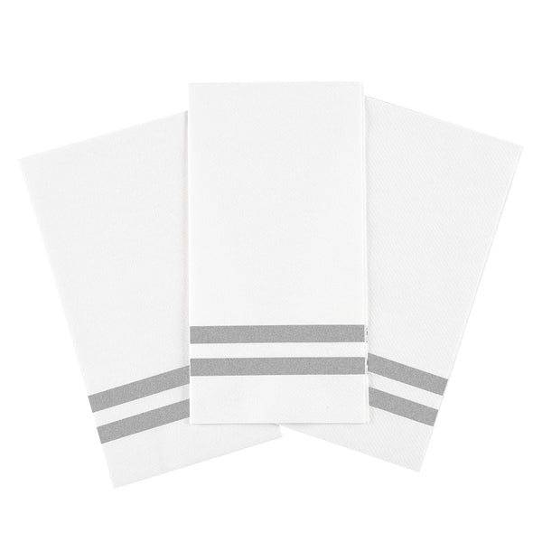SILVER STRIPED PAPER LINEN-FEEL GUEST TOWEL/NAPKIN - AIR LAID