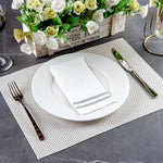 Give a perfect finishing touch to your table setting with our Luxenap Rectangle Silver White Paper Linen-Feel Guest Towels / Napkins. Designed from high-quality paper, these airlaid paper napkins are durable even when wet and have a high absorption tendency with excellent liquid retention. Made as airlaid paper, these linen-feel paper disposable napkins are super soft, providing you with a comfortable touch. Featuring sleek silver stripes at the bottom, these white paper napkins add elegance to the tablescape, making them perfect for catered events, wedding banquets, and birthday parties. These single-ply buffet napkins are conveniently disposable after large events, avoiding tedious laundering. Made from environmentally-friendly paper, these rectangle paper napkins are biodegradable and sustainable, minimizing your carbon footprint. Measuring 15.75 inches in length by 8 inches in width when opened and 8 inches in length by 4 inches in width when folded, these guest towels minimize occupying much space in your table setting. Shipped in a 2,000 count box. This item will only degrade outside of the traditional solid waste stream.