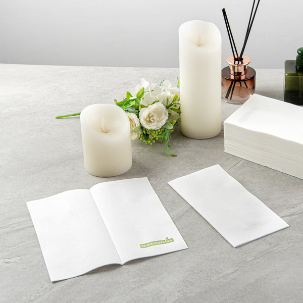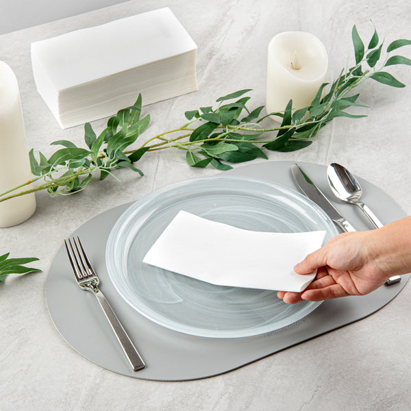 Experience the blend of style, convenience, and sustainability with our Luxenap Rectangle White Paper Linen-Feel Guest Towels / Napkins. With a high-end linen feel, these air-laid napkins add an unmistakable touch of elegance to your table decor. These paper serviettes impress with their quilted texture and superior absorbency providing comfort to the guests. With a biodegradable and commercially compostable design, these guest towels prioritize environmental responsibility. The white hue of these linen-feel paper napkins makes them perfect for a wide range of events like a luxurious wedding, an intimate dinner party, serving customers at a cafe, and impressing guests at catered events. Measuring 15.75 inches in length by 7.75 inches in width when open and 7.75 inches in length by 4 inches in width when conveniently pre-folded in a 1/4-fold, these disposable table napkins are equally suitable for use as guest towels or disposable hand towels in your bathroom. Sold in a 50 count box. These items will only degrade outside of the traditional solid waste stream.