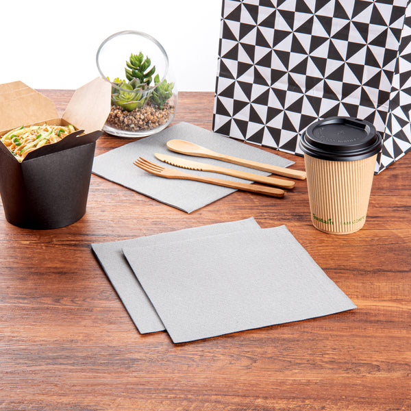 Our Luxenap Air Laid Disposable Napkins combine the luxurious soft touch of linen napkins with the ultimate convenience of disposable paper napkins. Constructed from premium air laid paper, these cloth-like disposable napkins are sumptuously soft and impressively absorbent. Their large 16-inch by 16-inch unfolded size comfortably covers guests' laps, while their non-linting and static-free surface keeps clothing pristine and protected. Featuring a denim-inspired dark gray design, these sophisticated paper napkins look great on any tablescape for any occasion. These upscale luncheon napkins will arrive pre-folded in ready-to-use 8-inch by 8-inch squares. Browse our extensive selection of disposable flatware options to complete the look! Sold in a 25 count box.