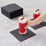 SQUARE BLACK PAPER NAPKIN - DOUBLE POINT, 2-PLY, WITH WHITE THREADS
