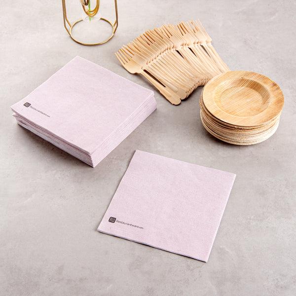 - Pre-folded napkins wrap around cutlery to easily reset tables