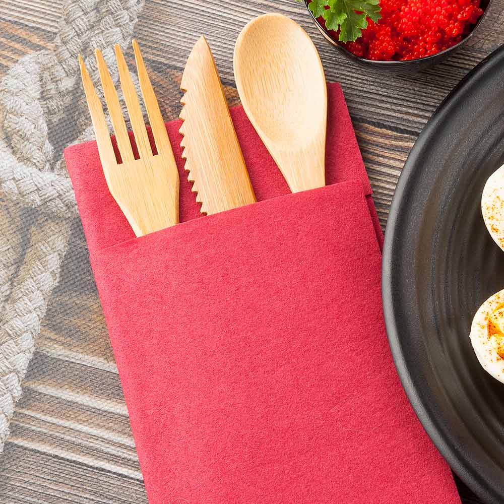 Offering a convenient pouch, these pre-folded napkins provide a solution for keeping utensils organized, avoiding the need for additional utensil holders or separate napkins and cutlery arrangements. Save space on the table and reduce clutter!