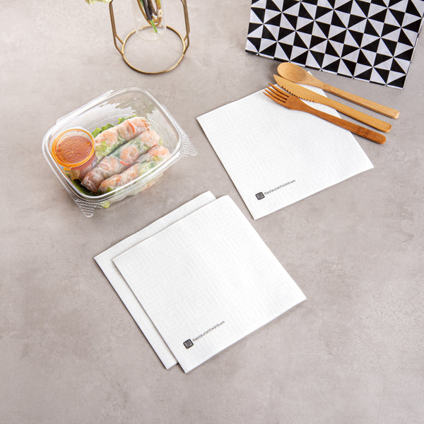 Enhance dining experiences with sophisticated disposable napkins. Luxenap Highly-Absorbent Disposable Napkins – White Paper, Elegant Design, Cloth-Like Feel – boast an air-laid paper construction, which provides a soft, cloth-like feel for superior guest comfort and durability during service. These air-laid napkins feature a generous 15.75-inch by 15.75-inch size, accommodating full meals or desserts, ensuring ample coverage and convenience for guests. The elegant Greco design of these sleek paper napkins adds a refined touch to table settings, enhancing the dining ambiance while maintaining an upscale appearance. Their biodegradable design supports eco-friendly initiatives, aligning with sustainability goals. Ideal for fine dining restaurants, catering events, and hotels, these napkins simplify cleanup and reduce labor costs with their disposable nature. Each order includes 800 Luxenap Highly-Absorbent Disposable Napkins.