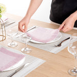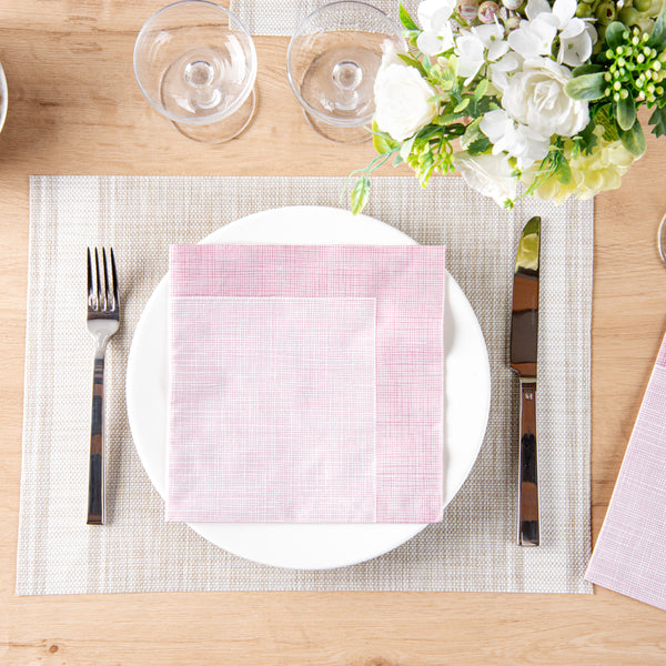 Add a touch of sophistication to any gathering with our Luxenap Square White Paper Napkins. The elegant burgundy-threaded pattern of these paper napkins beautifully accentuates any tablescape. Crafted from high-quality airlaid paper, these napkins effortlessly handle even the toughest spills and messes. The exquisite design of these paper napkins features a stunning burgundy-threaded pattern that adds a touch of sophistication to any tablescape. Created using cellulose fibers, these airlaid napkins offer a gentle and luxurious touch that won't irritate the skin. For added convenience during table setup, these napkins come pre-folded. After the event, simply dispose of these white paper napkins to avoid the hassle of washing them. Plus, these disposable napkins are both commercially compostable and biodegradable. Each pre-folded premium napkin measures 15.75 inches long by 15.75 inches wide when opened and 8 inches long by 8 inches wide when folded. Shipped in a 25 count box. This item will only degrade outside of the traditional solid waste stream.