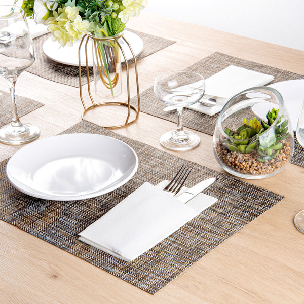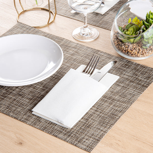 Offering a convenient pouch, these pre-folded napkins provide a solution for keeping utensils organized, avoiding the need for additional utensil holders or separate napkins and cutlery arrangements. Save space on the table and reduce clutter!