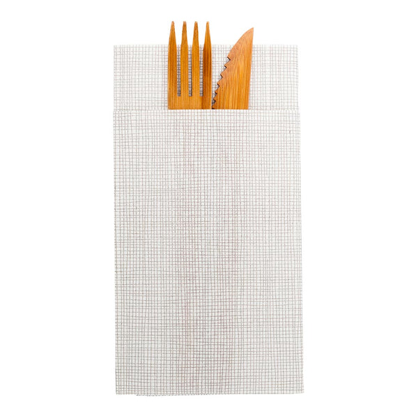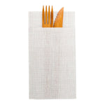 Bring style and convenience to table settings using our Luxenap White Paper Napkins. Constructed from high-quality air-laid paper, these white napkins are lightweight and have a soft linen-like feel, making them the perfect alternative to traditional dinner napkins. These white paper napkins have a built-in pocket to securely hold cutlery for guests. These air-laid napkins have a static-free and non-linting design that keeps your customers' laps protected and clothing pristine. With a classic white finish and gray threaded pattern, these white napkins perfectly complement tablescapes at restaurants or catered events. These air-laid napkins are built to be extremely absorbent and strong to quickly soak up spills or messes. Each of these white paper napkins comes pre-folded with a measurement of 7.75 inches in length by 3.9 inches in width and 15.75 inches in length by 15 inches in width when unfolded. Sold in a 40 count box.