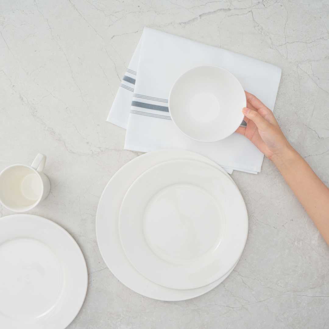 Elevate your tablescapes using our Luxenap White Woven Cloth Bistro Napkins. Perfect for weddings, celebrations, or special occasions, these cloth table napkins feature a gray stripe that adds an elegant touch to any table. Made from high-quality polyester, these cloth table napkins are stain-resistant to stop messes from creating permanent stains. These white fabric napkins are wrinkle-resistant so you can minimize constant ironing at your establishment. Perfect for everyday use at your restaurant, these gray napkins are machine-washable and provide a simple way to clean napkins. These cloth table napkins also avoid pilling and shrinking while washing. Featuring a tightly woven design, these white fabric napkins are designed to withstand constant use. These gray napkins measure 18.5 inches in length by 22.75 inches in width. Shipped in a 300 count box.