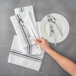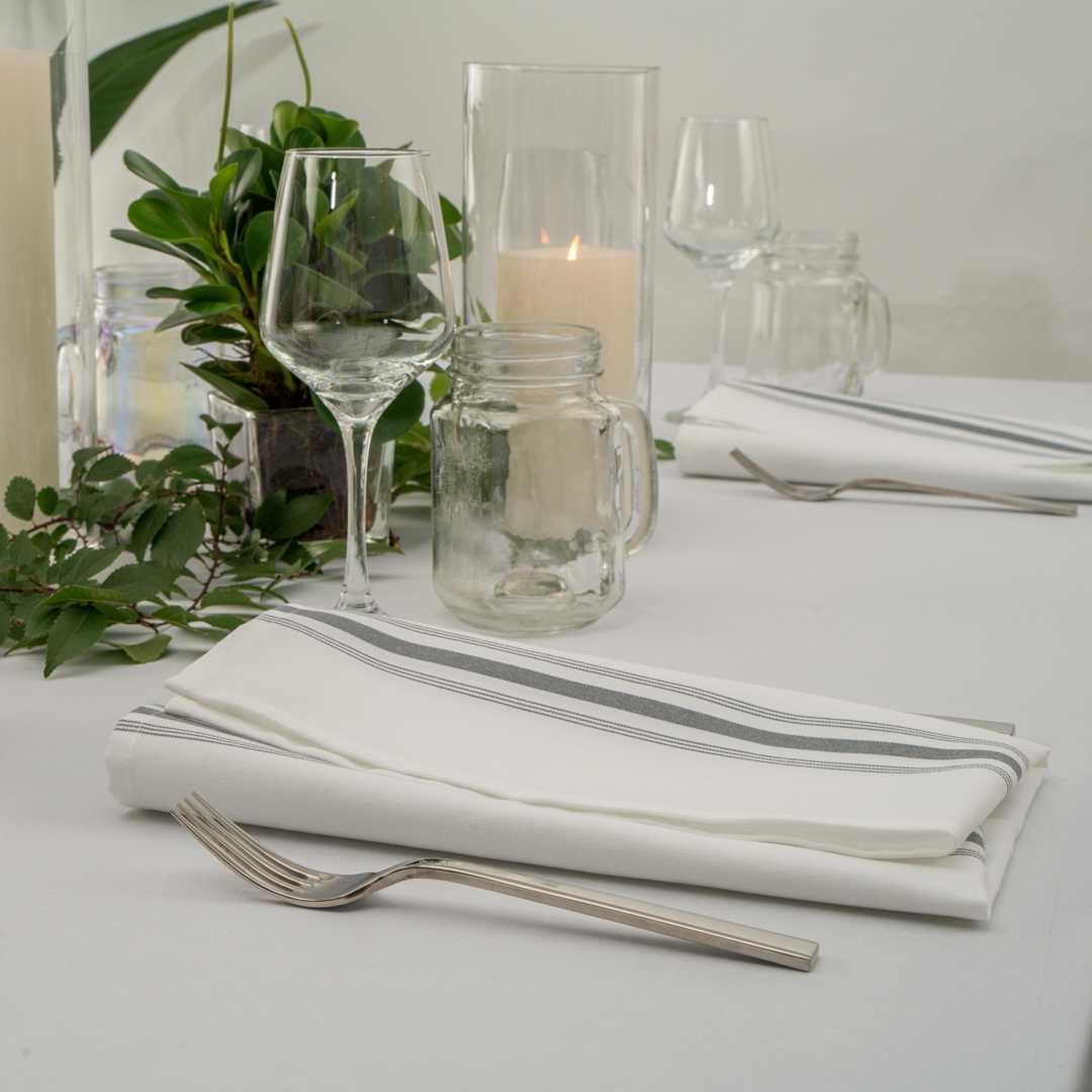 WHITE WOVEN CLOTH BISTRO NAPKIN - GRAY STRIPE