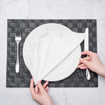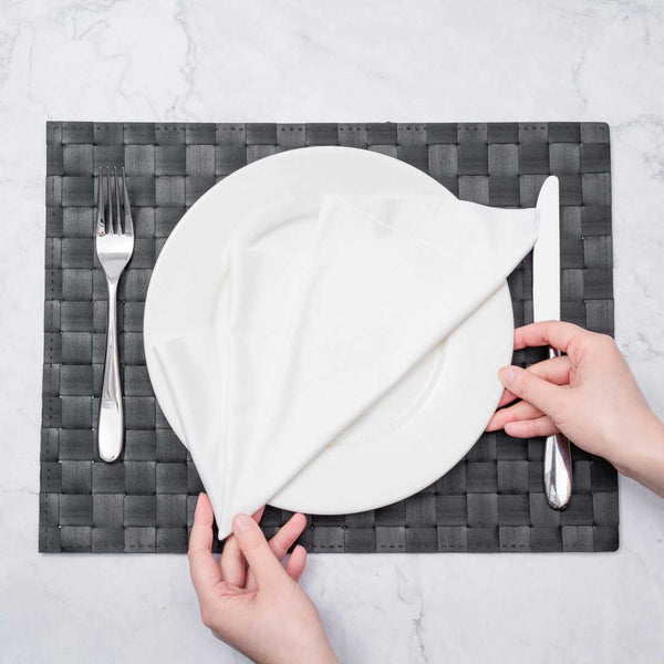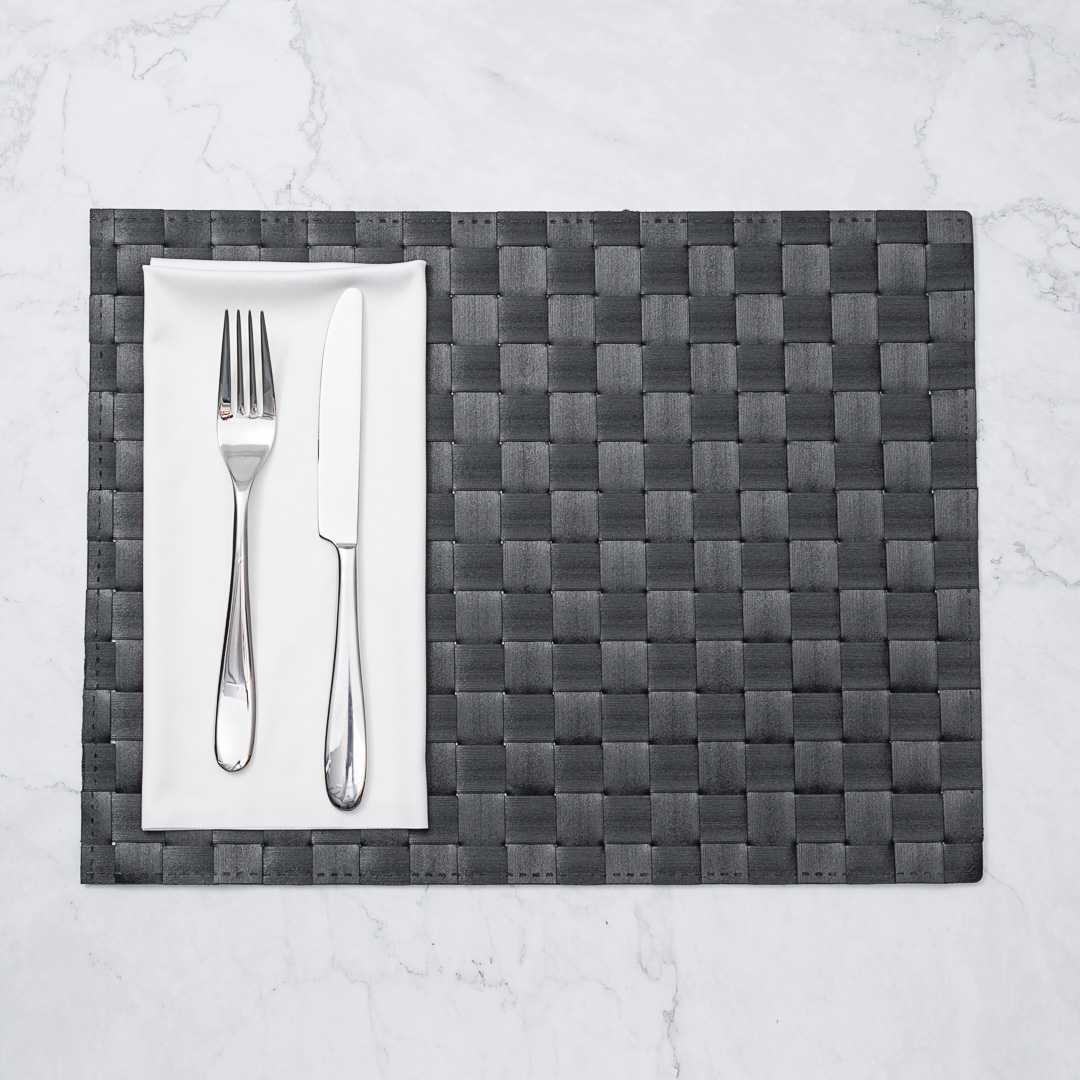 - Black woven design ensures a sophisticated table setting every time