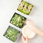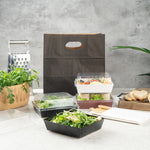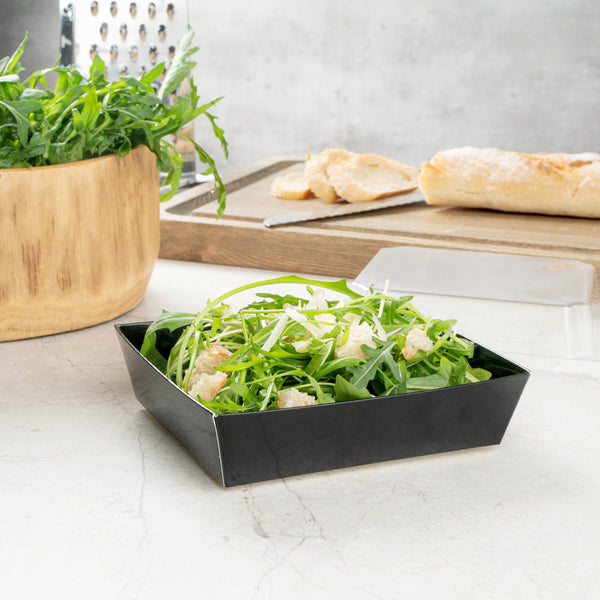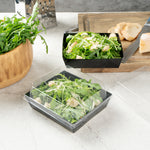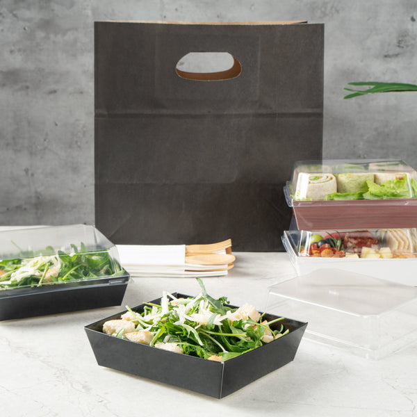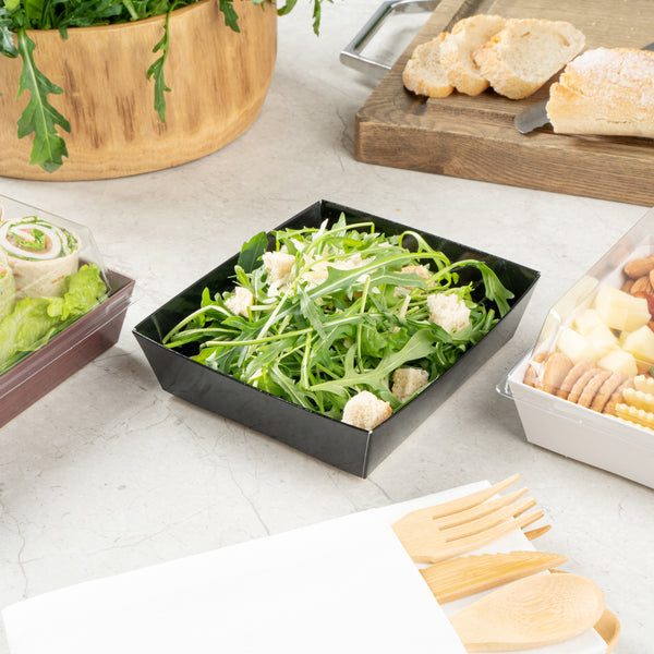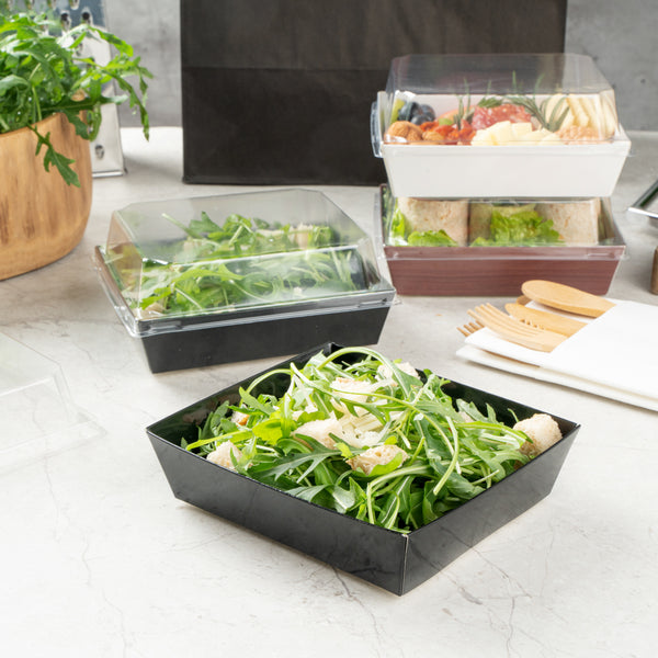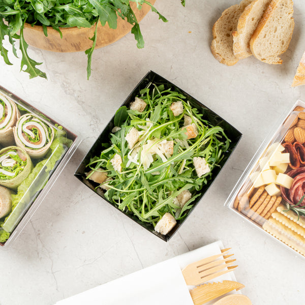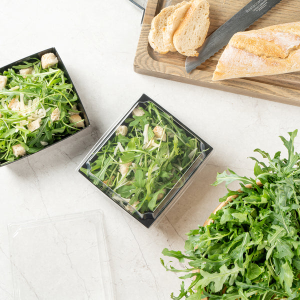 To take meals with you, our containers can be covered with our matching lids to securely seal your food. By combining containers with our crystal clear lids, guests will be able to take a peek inside each container.