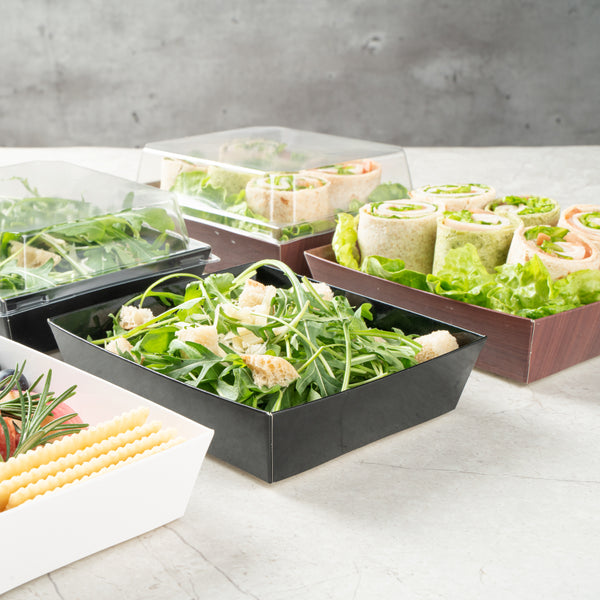 Choose from our kraft, black, white, or wood grain take out containers to complement the colors of food and match the theme of your event. Find the color that suits your needs!